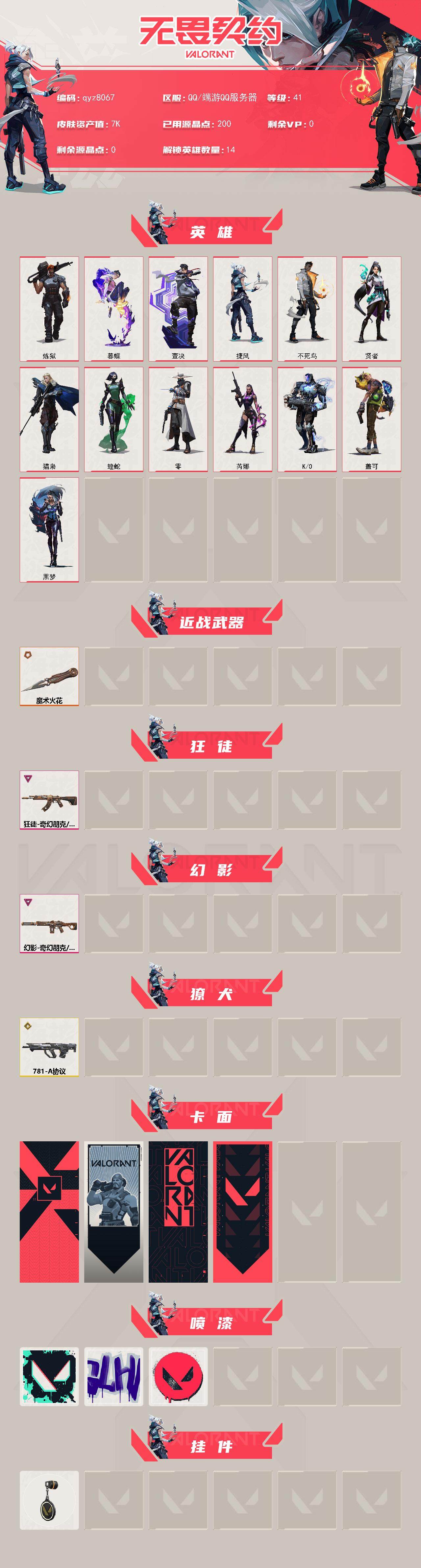 精品74级青铜小号-奇幻30套/781獠犬-喜欢的来吧-qyz8067-近战武器皮肤:-魔术火花-步呛皮肤:-獠犬-781-a协议幻影-奇幻朋克30奇幻朋克30狂徒-亮点:-【qyz8067】精品74级青铜小号-奇幻30套/781獠犬-喜欢的来吧-qyz8067-近战武器皮肤:-魔术火花-步呛皮肤:-獠犬-781-a协议幻影-奇幻朋克30奇幻朋克30狂徒-亮点:-【qyz8067】【英雄】:炼狱,暮蝶,壹决,捷风,不死鸟,贤者,猎枭,蝰蛇,零,芮娜,k/o,盖可,黑梦【近战-武器】:近战武器-魔术火花,近战武器-魔术火花【狂徒】:狂徒-奇幻朋克//30【幻影】:幻影-奇幻朋克//30【獠犬】:獠犬-781-a协议【卡面】:代号红色-卡面,新兵报到-卡面,v契约-卡面,无畏契约-卡面【喷漆】:胜利属于无畏契约-喷漆,glhf-喷漆,无畏契约-喷漆【挂饰】:无畏契约-纪念币-挂饰