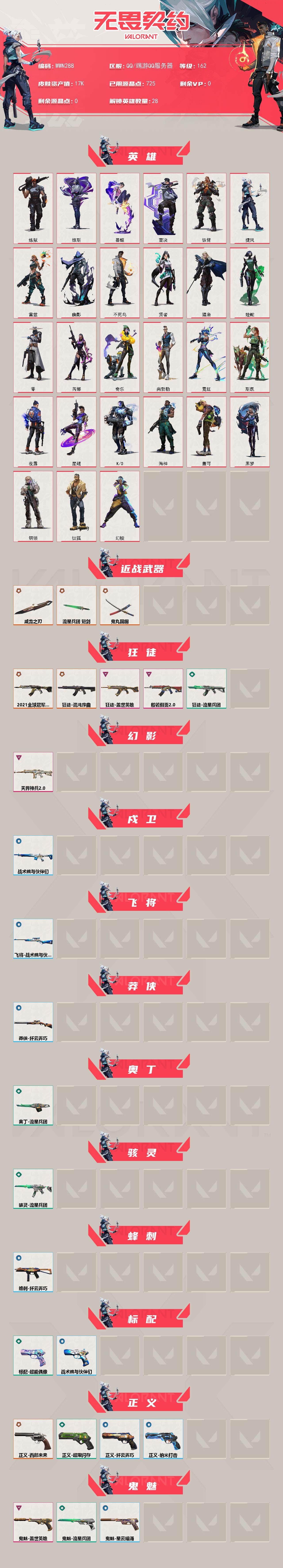 【wwn288】终极6/卓越4/皮肤29/等级162/段位:黄金/幻棱/炼狱/维斯/暮蝶/钛狐/壹决/铁臂/捷风/雷兹/幽影/不死鸟/贤者/猎枭/蝰蛇/零/芮娜/奇乐/尚勃勒/霓虹/斯凯/夜露/星礈/k/o/海神/盖可/黑梦/钢锁/近战武器-威龙之刃/近战武器-鬼丸国纲/近战武器-流星兵团 短剑/狂徒-2021全球冠军赛/狂徒-混沌序曲/狂徒-般若假面//2.0/狂徒-盖世英雄/狂徒-流星兵团/幻影-天界神兵//2.0/戍卫-战术熊与伙伴们/飞将-战术熊与伙伴们/莽侠-纤云弄巧/奥丁-流星兵团/骇灵-流星兵团/蜂刺-纤云弄巧/标配-超能偶像/标配-战术熊与伙伴们/正义-西部未来/正义-超限闪存/正义-纳米打击/正义-纤云弄巧/鬼魅-盖世英雄/鬼魅-流星兵团/鬼魅-星云暗涌/狂怒-战术熊与伙伴们/短炮-纤云弄巧/终章:激斗汉堡 卡面/进入射程 卡面/激斗汉堡 卡面/《双城之战》拥抱 卡面/精灵大战 卡面/欢迎来到底城 卡面/南瓜盛典 卡面/修车达人 卡面/正义的化身 卡面/终章:生意人麦宝 卡面/铁之华 卡面/时间到 卡面/最高舞台 卡面/声感陷阱设计图 卡面/梦幻奶茶 卡面/终章:打造专属狂徒 卡面/趁热吃 卡面/西装暴徒 卡面/失控边缘 卡面/哨卫者之领域 卡面/暮蝶工牌 卡面/战术熊与伙伴们 卡面/源能反应 卡面/流星兵团 卡面/纤云弄巧 卡面/暂别喧嚣 卡面/打造专属狂徒 卡面/零点嗅探设计图 卡面/沙雕爆能器 卡面/无畏契约go!第一卷:芮娜 卡面/清除名单 卡面/无畏契约go!第一卷:零 卡面/龍记 卡面/完美调谐 卡面 /战术小伙伴 卡面/暗呛 卡面/代号红色 卡面/冰淇淋店 卡面/新兵报到 卡面/v契约 卡面/无畏契约 卡面/嗨宝南瓜灯 喷漆/嘭! 喷漆/都算到了 喷漆/控场勿近 喷漆/伤心心 喷漆/小丑猫 喷漆/熊抱 喷漆/超级粉丝 喷漆/捷风差距 喷漆/惊声尖叫 喷漆/拼一呛 喷漆/加油!加油! 喷漆/开心到爆炸 喷漆/皮蛋萌舞 喷漆/我觉得不行 喷漆/头号粉丝 喷漆/吸一口快乐 喷漆/永远的答案 喷漆/再来一次? 喷漆/别挡我的路! 喷漆/我的刀呢? 喷漆/当然可以 喷漆/流星兵团 喷漆/战术熊与伙伴们 喷漆/禁止喷漆 喷漆/纤云弄巧 喷漆/uwu 喷漆/新潮流 喷漆/双击点赞 喷漆/买装还是存钱 喷漆/醒狮贺春 喷漆/蕊形灯 喷漆/红牌退场 喷漆/胜利属于无畏契约 喷漆/glhf 喷漆/无畏契约 喷漆/终章:猫猫木乃伊 挂饰/悠闲鸡块 挂饰/逆冲蛮牛 挂饰/伞绳 挂饰/《双城之战》小蛋糕 挂饰/第九季//第三幕 纪念币 挂饰/工具腰带 挂饰/无畏契约go!第一卷 芮娜 挂饰/无畏契约go!第一卷 零 挂饰/熔岩灯 挂饰/第九季//第二幕 纪念币 挂饰/终章:这瓜保熟 挂饰/糖葫芦 挂饰/袖珍捷风 挂饰/迷你浓缩 挂饰/第九季//第一幕 纪念币 挂饰/第八季:白银 挂饰/终章:迷你机甲 挂饰/犯困的布鲁诺 挂饰/战术河童 挂饰/招财猫熊 挂饰/迷你机甲 挂饰/荧光棒 挂饰/章鱼烧先生 挂饰/流星兵团 挂饰/云开见日 挂饰/第八季//第三幕 纪念币 挂饰/传世莲华 挂饰/第八季//第二幕 纪念币 挂饰 /天外飞客 挂饰/好运福爪 挂饰/瞄这里 挂饰/第八季//第一幕 纪念币 挂饰/无畏契约 纪念币 挂饰