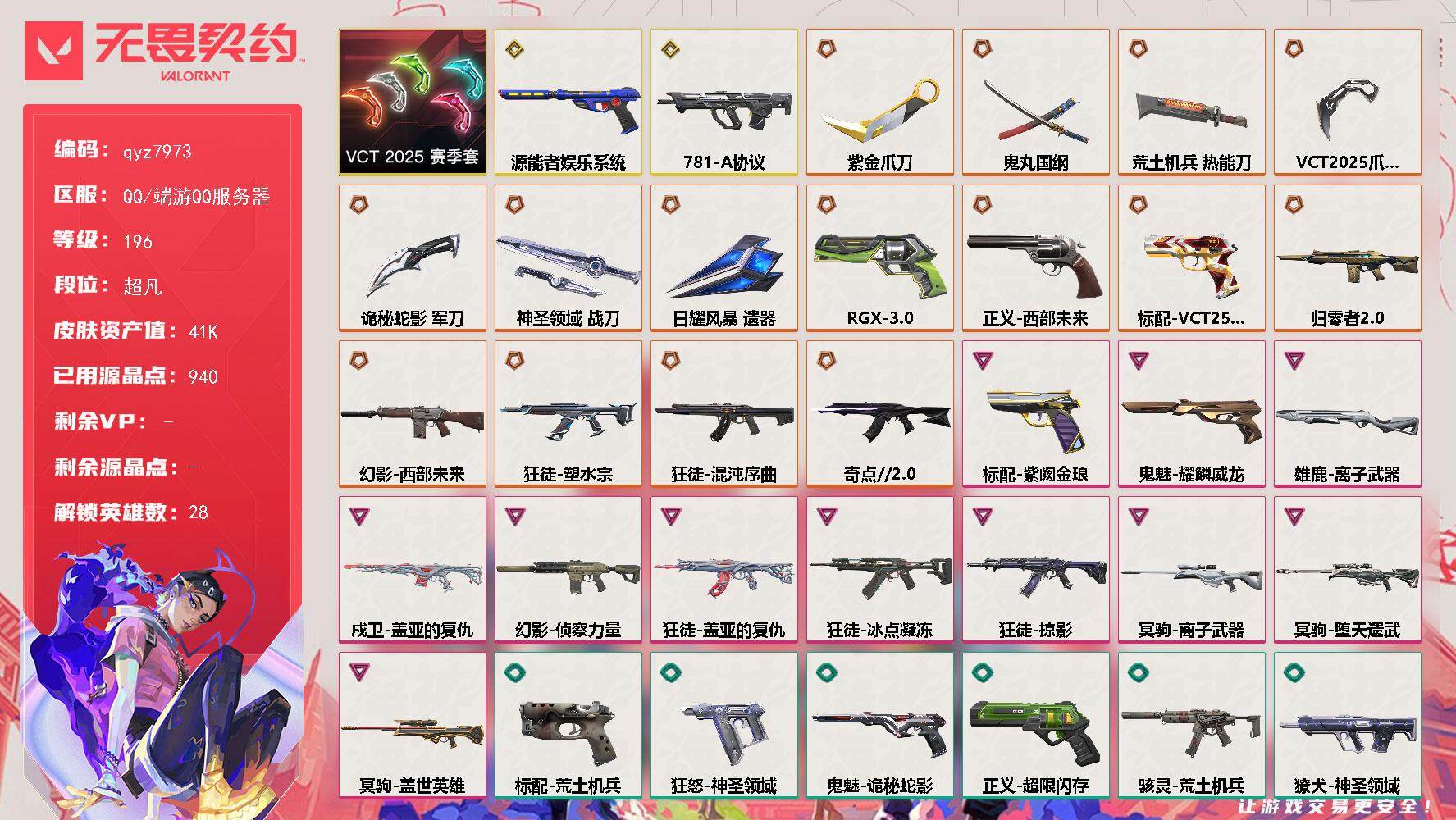 2025爪刀紫金爪刀鬼丸国纲-塑水混沌掠影奇点狂徒-qyz7973-套装:-vct-2025赛季礼包-近战武器皮肤:-紫金爪刀荒土机兵热能刀鬼丸国纲神圣领域-战刀vct-2025-爪刀诡秘蛇影-步呛皮肤:-戍卫-盖亚的复仇狂徒-盖亚的复仇幻影-侦察力量狂徒-冰点凝冻狂徒-塑水宗獠犬-781-a协议狂徒-混沌序曲狂徒-奇点//20狂徒-掠影幻影-归零者//20幻影-西部未来-佩呛皮肤:-标配-紫阙金琅鬼魅-耀鳞威龙鬼魅-源能者娱乐系统正义-rgx-11z-pro-30标配-vct25xedg正义-西部未来-狙击呛皮肤:-冥驹-盖世英雄冥驹-堕天遗武冥驹-离子武器-霰弹呛皮肤:-雄鹿-离子武器-亮点:-【qyz7973】【套装】:vct-2025-赛季套装【英雄】:幻棱,炼狱,维斯,暮蝶,钛狐,壹决,铁臂,捷风,雷兹,幽影,不死鸟,贤者,猎枭,蝰蛇,零,芮娜,奇乐,尚勃勒,霓虹,斯凯,夜露,星礈,k/o,海神,盖可,黑梦,钢锁【近战-武器】:近战武器-vct-2025-爪刀,近战武器-紫金爪刀,近战武器-鬼丸国纲,近战武器-荒土机兵-热能刀,近战武器-诡秘蛇影-军刀,近战武器-神圣领域-战刀,近战武器-日耀风暴-遗器【狂徒】:狂徒-混沌序曲,狂徒-奇点//20,狂徒-塑水宗,狂徒-冰点凝冻,狂徒-掠影,狂徒-盖亚的复仇,狂徒-荒土机兵,狂徒-诡秘蛇影【幻影】:幻影-归零者//20,幻影-西部未来,幻影-侦察力量,幻影-神圣领域,幻影-纳米打击,幻影-末日之翼,幻影-西部未来【戍卫】:戍卫-盖亚的复仇,戍卫-逆冲蛮牛,戍卫-月球哨兵,戍卫-折光棱晶【獠犬】:獠犬-781-a协议,獠犬-神圣领域,獠犬-逆冲蛮牛【冥驹】:冥驹-堕天遗武,冥驹-盖世英雄,冥驹-离子武器,冥驹-荒土机兵,冥驹-星云暗涌【飞将】:飞将-末日之翼【莽侠】:莽侠-诡秘蛇影,莽侠-月球哨兵【战神】:战神-神圣领域【奥丁】:奥丁-纳米打击,奥丁-末日之翼【判官】:判官-诡秘蛇影,判官-纳米打击x【雄鹿】:雄鹿-离子武器,雄鹿-逆冲蛮牛,雄鹿-月球哨兵【骇灵】:骇灵-荒土机兵,骇灵-星云暗涌【蜂刺】:蜂刺-星云暗涌,蜂刺-折光棱晶【标配】:标配-紫阙金琅,标配-荒土机兵,标配-折光棱晶【vct手呛】:标配-vct25-x-edg【正