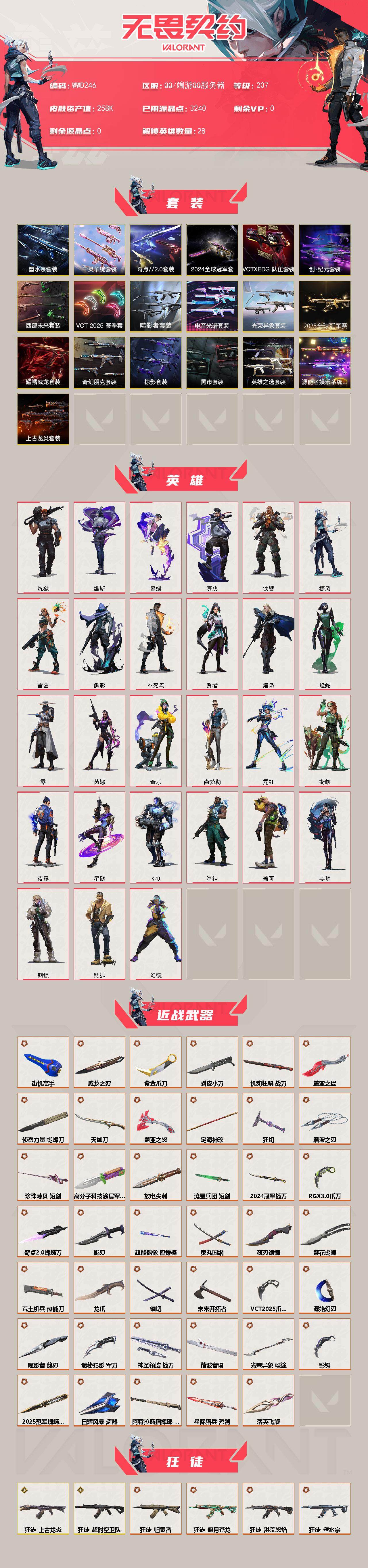 【wwd246】终极92/传奇12/卓越38/皮肤267/等级207/段位:铂金/2025全球冠军赛套装/2024全球冠军赛套装/源能者娱乐系统套装/上古龙炎套装/光荣异象套装/电音光谱套装/噬影者套装/vct 2025 赛季套装/西部未来套装/创·纪元套装/塑水宗套装/千灵华绽套装/奇点//2.0套装/vctxedg 队伍套装/掠影套装/耀鳞威龙套装/黑市套装/奇幻朋克套装/英雄之选套装/幻棱/炼狱/维斯/暮蝶/钛狐/壹决/铁臂/捷风/雷兹/幽影/不死鸟/贤者/猎枭/蝰蛇/零/芮娜/奇乐/尚勃勒/霓虹/斯凯/夜露/星礈/k/o/海神/盖可/黑梦/钢锁/近战武器-2025全球冠军赛 蝴蝶刀/近战武器-2024全球冠军赛 战刀/近战武器-影钩/近战武器-光荣异象 歧途/近战武器-谐波音谱/近战武器-穿花蝴蝶/近战武器-侦察力量 蝴蝶刀/近战武器-剥皮小刀/近战武器-奇点//2.0 蝴蝶刀/近战武器-vct 2025 爪刀/近战武器-紫金爪刀/近战武器-rgx 11z pro//3.0 爪刀/近战武器-黑波之刃/近战武器-落英飞旋/近战武器-噬影者 簇刃/近战武器-镭切/近战武器-威龙之刃/近战武器-鬼丸国纲/近战武器-源始幻刃/近战武器-未来开拓者/近战武器-珍珠棘贝 短剑/近战武器-龙爪/近战武器-流星兵团 短剑/近战武器-超能偶像 应援棒/近战武器-定海神珍/近战武器-放电尖刺/近战武器-盖亚之怒/近战武器-盖亚之愠/近战武器-高分子科技涂层军刀/近战武器-荒土机兵 热能刀/近战武器-机动狂飙 战刀/近战武器-街机高手/近战武器-狂切/近战武器-天御刀/近战武器-夜刃诡镰/近战武器-影刃/近战武器-诡秘蛇影 军刀/近战武器-神圣领域 战刀/近战武器-日耀风暴 遗器/近战武器-阿特拉斯指挥部 甩棍/近战武器-星际猎兵 短剑/狂徒-上古龙炎/狂徒-超时空卫队/狂徒-2025全球冠军赛/狂徒-归零者/狂徒-洪荒怒焰/狂徒-混沌序曲/狂徒-奇点//2.0/狂徒-塑水宗/狂徒-偃月苍龙/狂徒-创·纪元/狂徒-虚空遗器/狂徒-噬影者/狂徒-rgx 11z pro/狂徒-光荣异象/狂徒-冰点凝冻/狂徒-堕天遗武/狂徒-掠影/狂徒-盖世英雄/狂徒-盖亚的复仇/狂徒-黑市/狂徒-日冕雄师/狂徒-耀鳞威龙/狂徒-紫阙金琅/狂徒-离子武器//2.0/狂徒-超能偶像/狂徒-荒土机兵/狂徒-流星兵团/狂徒-诡秘蛇影/幻影-781-a协议/幻影-源能者娱乐系统/幻影-2024全球冠军赛/幻影-千灵华绽/幻影-西部未来/幻影-虚空遗器/幻影-电音光谱/幻影-末日泡泡/幻影-混沌序曲//2.0/幻影-般若假面/幻影-天界神兵//2.0/幻影-侦察力量/幻影-异鳞魔蛇/幻影-掠影//2.0/幻影-珍珠棘贝/幻影-神圣领域/幻影-聚合之力/幻影-纳米打击/幻影-战术小伙伴/幻影-末日之翼/戍卫-噬影者/戍卫-电音光谱/戍卫-掠影/戍卫-盖亚的复仇/戍卫-天界神兵/戍卫-紫阙金琅/戍卫-超能偶像/戍卫-珍珠棘贝/戍卫-浮光跃金/戍卫-逆冲蛮牛/戍卫-战术熊与伙伴们/戍卫-月球哨兵/戍卫-折光棱晶/獠犬-781-a协议/獠犬-源能者娱乐系统/獠犬-电音光谱/獠犬-黑市/獠犬-神圣领域/獠犬-采蜜小蜂队/獠犬-复古浪潮/獠犬-逆冲蛮牛/冥驹-源能者娱乐系统/冥驹-上古龙炎/冥驹-千灵华绽/冥驹-偃月苍龙/冥驹-光荣异象/冥驹-堕天遗武/冥驹-掠影/冥驹-盖世英雄/冥驹-离子武器/冥驹-起源/冥驹-荒土机兵/冥驹-复古浪潮/冥驹-模拟赫兹/冥驹-星云暗涌/飞将-黯夜怪谈/飞将-塑水宗/飞将-西部未来/飞将-奇幻朋克/飞将-黑市/飞将-聚合之力/飞将-光导纤维/飞将-战术熊与伙伴们/飞将-末日之翼/莽侠-创·纪元/莽侠-超限闪存/莽侠-诡秘蛇影/莽侠-深海水族/莽侠-纤云弄巧/莽侠-月球哨兵/战神-神圣领域/战神-采蜜小蜂队/战神-浮光跃金/战神-深海水族/奥丁-艾沃莉的梦之翼/奥丁-西部未来/奥丁-流星兵团/奥丁-纳米打击/奥丁-战术小伙伴/奥丁-末日之翼/判官-上古龙炎/判官-千灵华绽/判官-全息波普/判官-光荣异象/判官-超能偶像/判官-诡秘蛇影/判官-采蜜小蜂队/判官-纳米打击x/雄鹿-奇幻朋克/雄鹿-起源/雄鹿-复古浪潮/雄鹿-模拟赫兹/雄鹿-逆冲蛮牛/雄鹿-月球哨兵/骇灵-光明哨兵//2.0/骇灵-塑水宗/骇灵-创·纪元/骇灵-奇幻朋克/骇灵-荒土机兵/骇灵-流星兵团/骇灵-珍珠棘贝/骇灵-浮光跃金/骇灵-光导纤维/骇灵-星云暗涌/蜂刺-噬影者/蜂刺-天界神兵/蜂刺-超限闪存/蜂刺-聚合之力/蜂刺-深海水族/蜂刺-纤云弄巧/蜂刺-战术小伙伴/蜂刺-星云暗涌/蜂刺-折光棱晶/标配-黯夜怪谈/标配-电音光谱/标配-光荣异象/标配-黑市/标配-超能偶像/标配-荒土机兵/标配-浮光跃金/标配-光导纤维/标配-战术熊与伙伴们/标配-折光棱晶/标配-vct x edg/正义-奇点/正义-千灵华绽/正义-塑水宗/正义-创·纪元/正义-西部未来/正义-混沌序曲//2.0/正义-掠影/正义-复古浪潮/正义-纳米打击/正义-纤云弄巧/正义-月球哨兵/鬼魅-源能者娱乐系统/鬼魅-奇点//2.0/鬼魅-噬影者/鬼魅-盖世英雄/鬼魅-奇幻朋克/鬼魅-天界神兵/鬼魅-耀鳞威龙/鬼魅-侦察力量/鬼魅-流星兵团/鬼魅-诡秘蛇影/鬼魅-采蜜小蜂队/鬼魅-模拟赫兹/鬼魅-星云暗涌/狂怒-上古龙炎/狂怒-砰砰x特攻队/狂怒-钢轨卫士/狂怒-珍珠棘贝/狂怒-神圣领域/狂怒-聚合之力/狂怒-逆冲蛮牛/狂怒-战术熊与伙伴们/短炮-归零者/短炮-钢轨卫士/短炮-深海水族/短炮-纤云弄巧/短炮-末日之翼/终章:激斗汉堡 卡面/进入射程 卡面/分崩离析 卡面/纳米打击 卡面/抑制技术 卡面/激斗汉堡 卡面/瓦娃脸雪糕 p2 卡面/从黄昏到黎明 卡面/荒土机兵 卡面/银弹猎手 卡面/逆冲蛮牛 卡面/《双城之战》拥抱 卡面/精灵大战 卡面/欢迎来到底城 卡面/南瓜盛典 