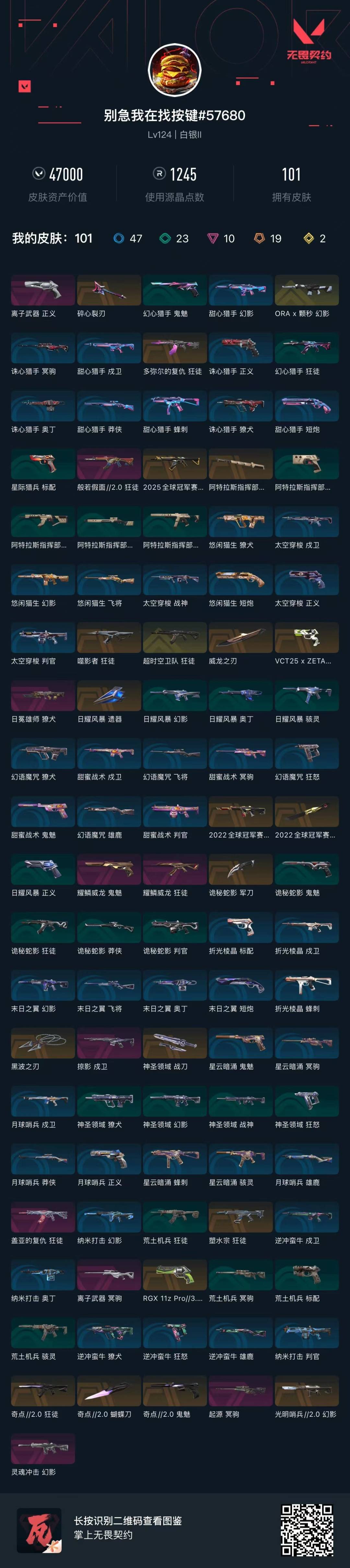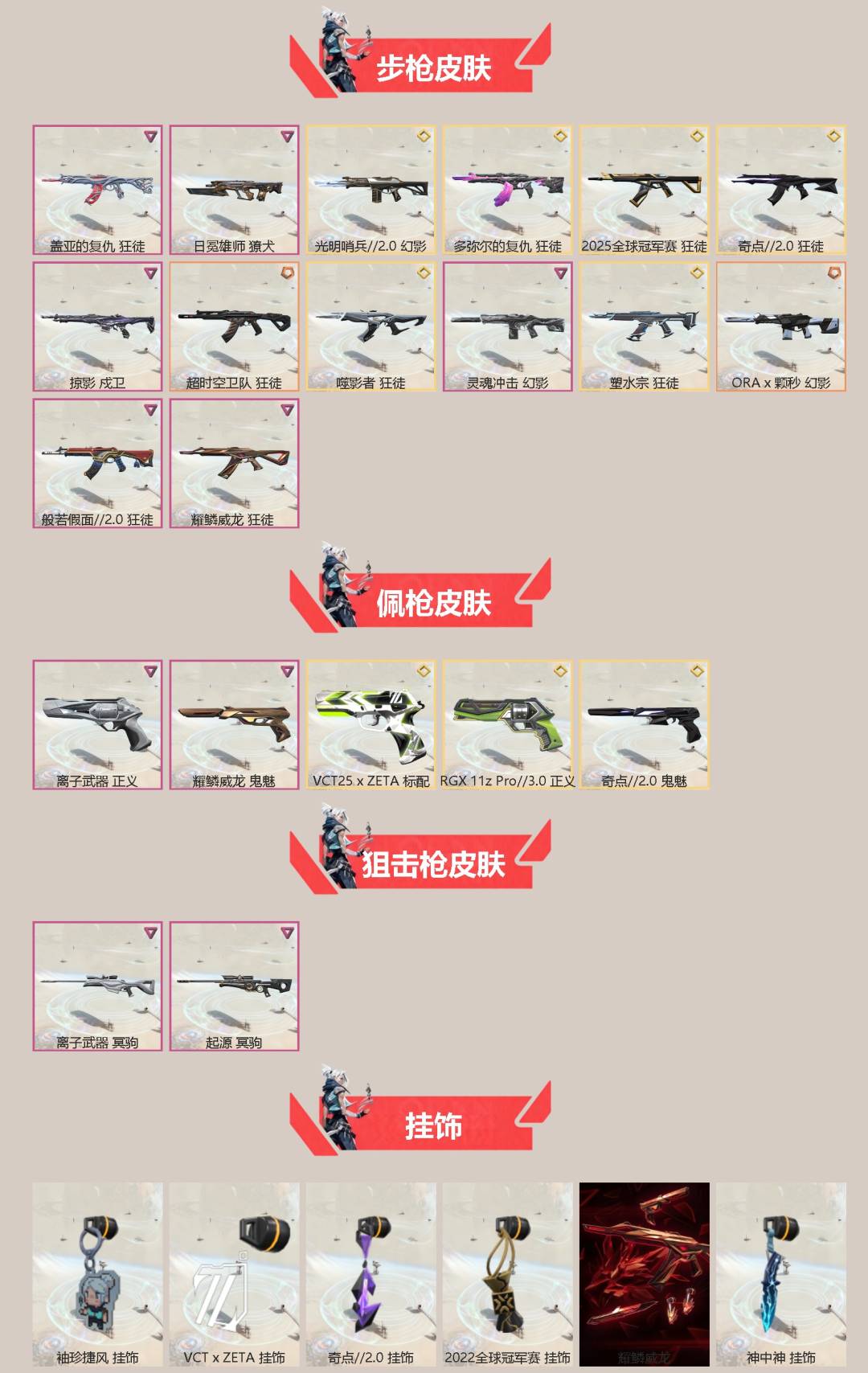 [14769349]19橙皮 2金皮 10紫皮 101皮肤 18英雄 122卡面 1245已用源晶 白银段位 【亮点皮肤】:幻影-2022全球冠军赛蝴蝶刀-2022全球冠军赛 【套装】:奇点//2.0套装2022全球冠军赛耀鳞威龙套装曲奇套装 【近战武器皮肤】:神圣领域 战刀诡秘蛇影蝴蝶刀-奇点//2.0阿特拉斯指挥部碎心裂刃黑波之刃威龙之刃 【佩呛皮肤】:鬼魅-奇点//2.0标配-vct25xzeta正义-rgx 11z pro 3.0正义-离子武器鬼魅-耀鳞威龙 【步呛皮肤】:狂徒-噬影者狂徒-奇点//2.0狂徒-般若假面//2.0戍卫-掠影幻影-ax颗秒多弥尔的复仇 狂徒2025全球冠军赛 狂徒狂徒-超时空卫队狂徒-盖亚的复仇狂徒-塑水宗狂徒-耀鳞威龙幻影-光明哨兵2.0幻影-灵魂冲击獠犬-日冕雄师 【狙击呛皮肤】:冥驹-起源冥驹-离子武器 【挂饰】:袖珍捷风挂饰奇点2.0挂饰神中神挂饰耀鳞威龙挂饰2022全球冠军赛弯檐帽挂饰vctxzeta挂饰