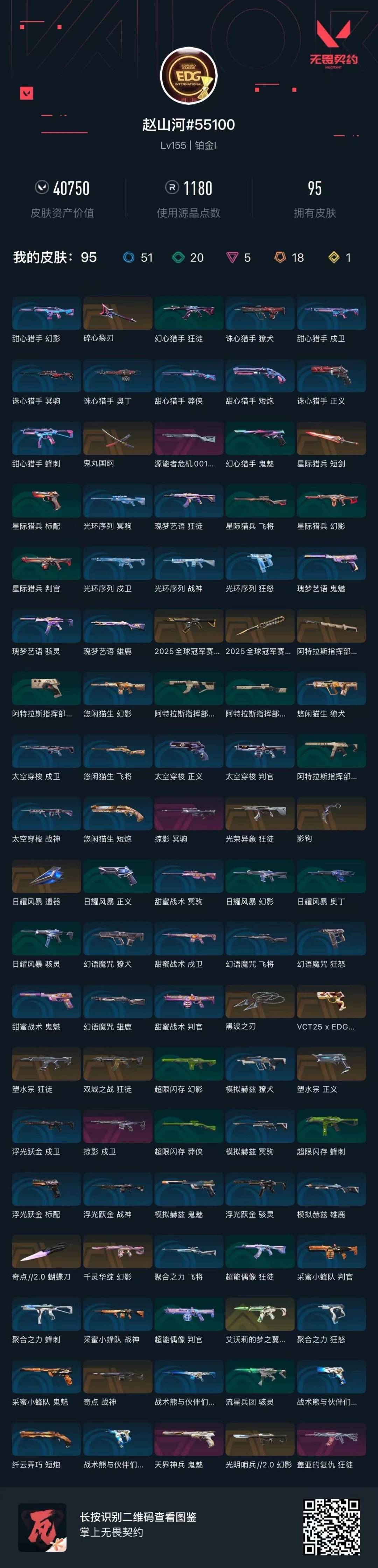 [14775918]18橙皮 1金皮 5紫皮 95皮肤 28英雄 126卡面 1180已用源晶 铂金段位 【套装】2025全球冠军赛 【近战武器皮肤】黑波之刃星际猎兵 短剑鬼丸国纲影钩碎心裂刃蝴蝶刀-奇点//2.02025全球冠军赛 蝴蝶刀阿特拉斯指挥部 【佩呛皮肤】鬼魅-天界神兵正义-塑水宗标配-vct25xedg 【冲锋呛皮肤】骇灵-艾沃莉的梦之翼 【霰弹呛皮肤】雄鹿-源能者危机001 【步呛皮肤】狂徒-盖亚的复仇幻影-光明哨兵2.0狂徒-光荣异象2025全球冠军赛 狂徒戍卫-掠影狂徒-塑水宗狂徒-双城之战幻影-千灵华绽 【狙击呛皮肤】冥驹-掠影 【机呛皮肤】战神-奇点 【挂饰】袖珍捷风挂饰超能偶像挂饰云开见日挂饰鱼骨头挂饰vctxedg挂饰神中神挂饰2025全球冠军赛挂饰飞刀挂饰双城之战小蛋糕挂饰