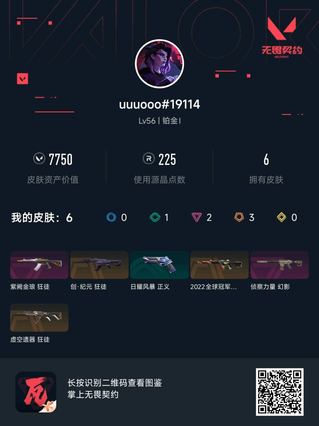 [14776001]3橙皮 2紫皮 6皮肤 20英雄 36卡面 225已用源晶 铂金段位 【步呛皮肤】:狂徒-虚空遗器狂徒-创·纪元狂徒-紫阙金琅幻影-侦察力量 【挂饰】:袖珍捷风挂饰神中神挂饰