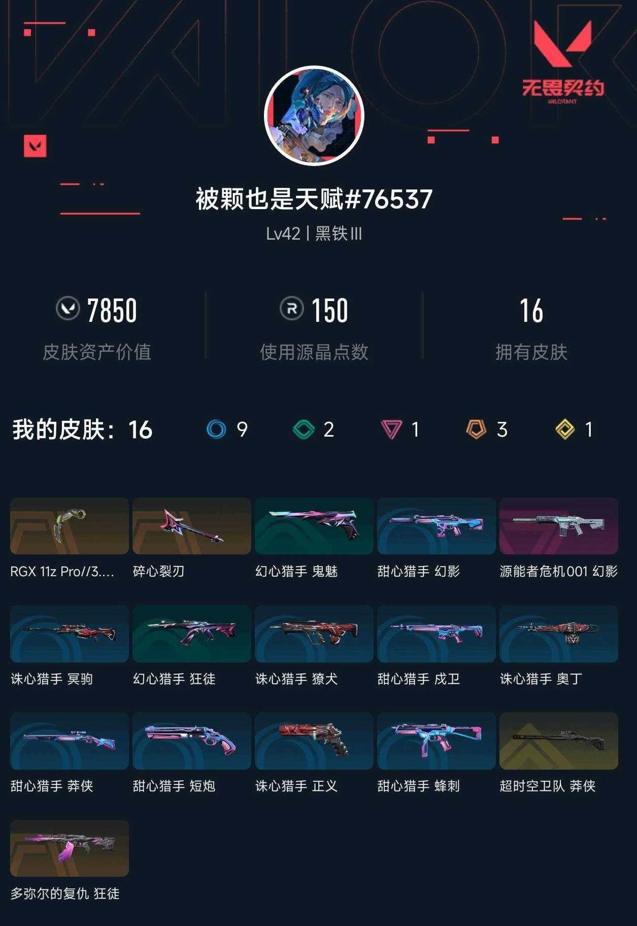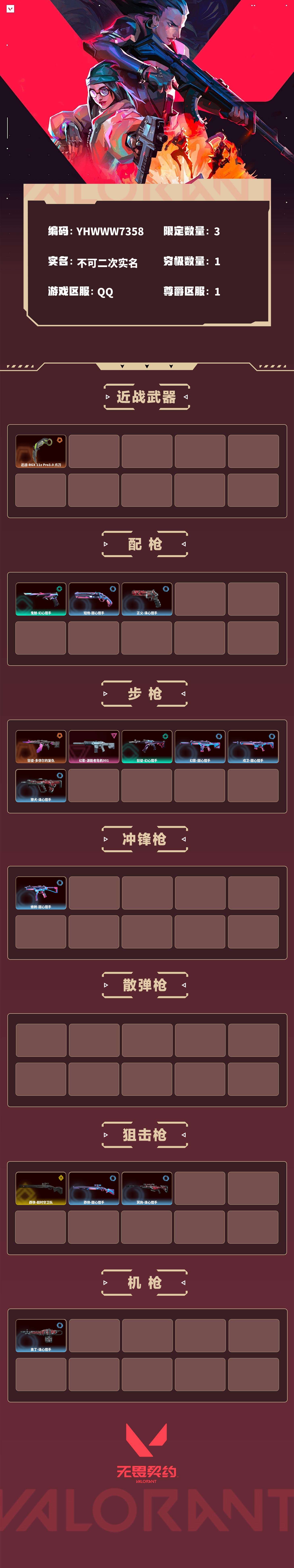 【无畏契约】【yhwww7358】等级:42,已用无畏点7850,已用源晶点150,橙皮:近战-rgx 11z pro3.0 爪刀|狂徒-多弥尔的复仇__紫皮:幻影-源能者危机001__段位:黑铁__金皮:莽侠-超时空卫队__英雄:尚勃勒|暮蝶|霓虹|壹决|幽影|夜露|钢锁|炼狱|铁臂|贤者|猎枭|钛狐|芮娜|捷风|不死鸟|禁灭__蓝皮:蜂刺-甜心猎手|短炮-甜心猎手|莽侠-甜心猎手|幻影-甜心猎手|戍卫-甜心猎手|正义-诛心猎手|冥驹-诛心猎手|獠犬-诛心猎手|奥丁-诛心猎手__绿皮:狂徒-幻心猎手|鬼魅-幻心猎手库存7850/显卡爪刀/多弥尔狂徒/棒球幻影/超时空莽侠
