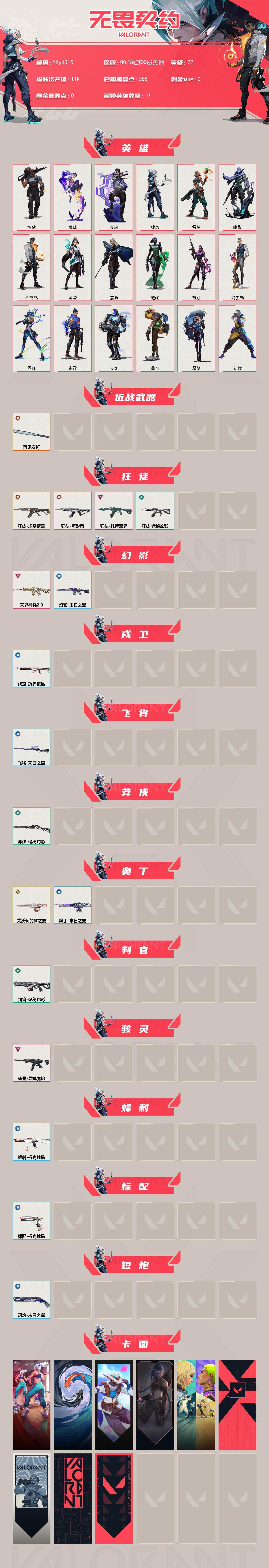 【1.1w库存棒球棍.三狂徒虚空.噬影者.天界幻影.猫猫奥丁】y4315【可二次】【因赛季更新游戏段付以上号为准!】 【英雄】:幻棱,炼狱,暮蝶,壹决,捷风,雷兹,幽影,不死鸟,贤者,猎枭,蝰蛇,芮娜,尚勃勒,霓虹,夜露,k/o,盖可,黑梦 【近战武器】:近战武器-再见安打 【狂徒】:狂徒-虚空遗器,狂徒-噬影者,狂徒-咒缚双界,狂徒-诡秘蛇影 【幻影】:幻影-天界神兵//2.0,幻影-末
