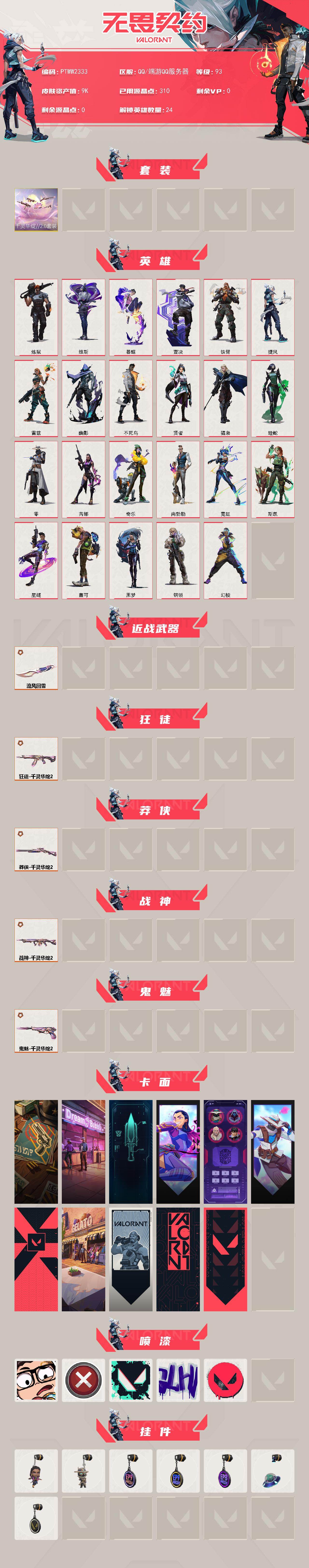【套装】:千灵华绽//2.0套装 【英雄】:幻棱,炼狱,维斯,暮蝶,壹决,铁臂,捷风,雷兹,幽影,不死鸟,贤者,猎枭,蝰蛇,零,芮娜,奇乐,尚勃勒,霓虹,斯凯,星礈,盖可,黑梦,钢锁 【近战武器】:近战武器-流风回雪 【狂徒】:狂徒-千灵华绽//2.0 【莽侠】:莽侠-千灵华绽//2.0 【战神】:战神-千灵华绽//2.0 【鬼魅】:鬼魅-千灵华绽//2.0 【卡面】:正义的化身 卡面,梦幻奶