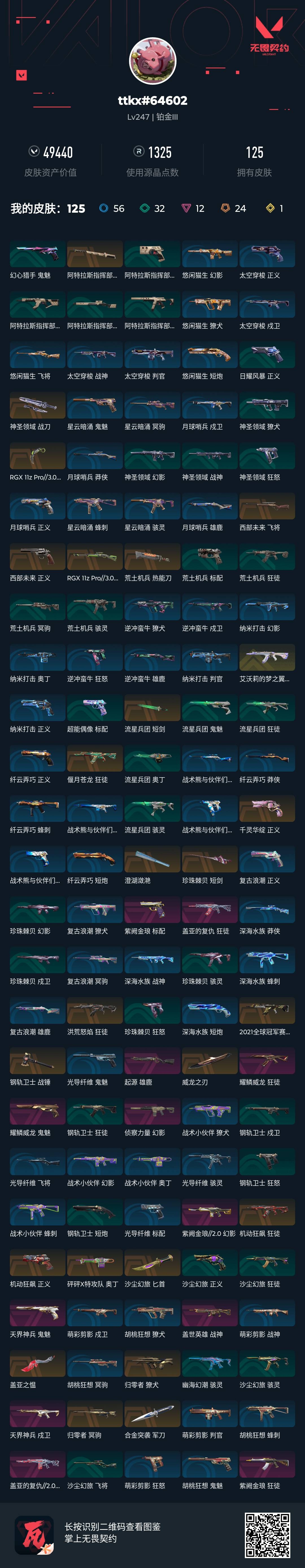 [15889404]l193160 (2021全球冠军赛-狂徒/耀鳞威龙套装)无畏契约/247级/铂金iii/28英雄/125皮肤/资产49440/已使用r点1325/剩余r点365/2021全球冠军赛-狂徒,耀鳞威龙-狂徒,耀鳞威龙-鬼魅,威龙之刃,阿特拉斯指挥部-甩棍,神圣领域-战刀,荒土机兵-热能刀,流星兵团-短剑,澄湖潋滟,珍珠棘贝-短剑,钢轨卫士-战锤,沙尘幻旅-匕首,合金突袭-军刀,rgx-11z-pro//3.0-爪刀,盖亚之愠,洪荒怒焰-狂徒,机动狂飙-狂徒,2021全球冠军赛-狂徒,归零者-獠犬,偃月苍龙-狂徒,艾沃莉的梦之翼-狂徒,紫阙金琅//2.0-幻影,天界神兵-戍卫,紫阙金琅-狂徒,盖亚的复仇//2.0-幻影,盖亚的复仇-狂徒,侦察力量-幻影,西部未来-飞将,rgx-11z-pro//3.0-莽侠,归零者-冥驹,砰砰x特攻队-奥丁,盖世英雄-战神,起源-雄鹿,西部未来-正义,千灵华绽-正义,机动狂飙-正义,天界神兵-鬼魅,紫阙金琅-标配