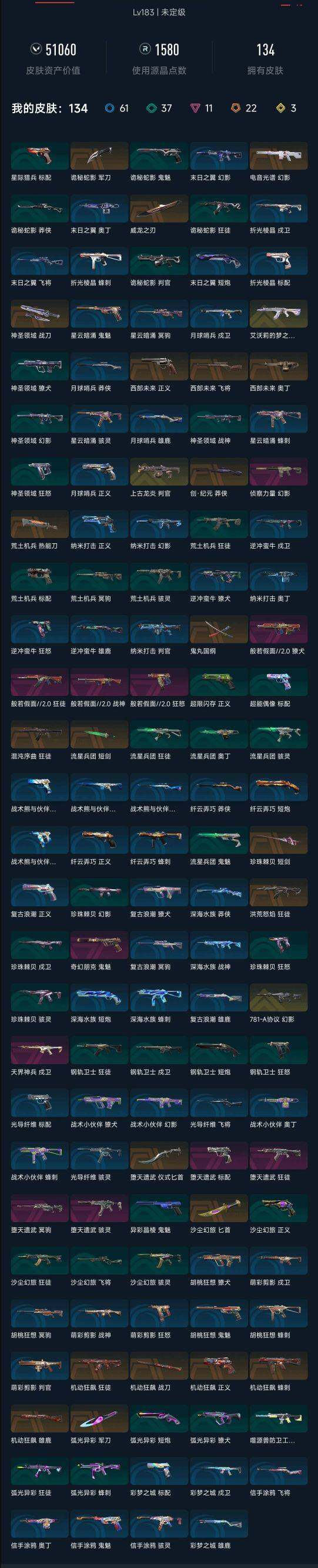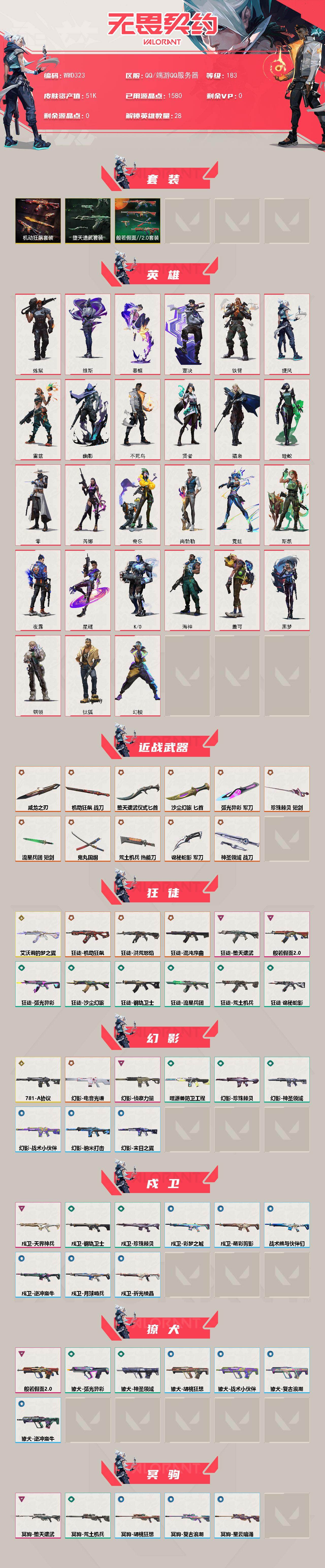 【wwd323】终极22/传奇3/卓越11/皮肤134/等级183/段位:未定级/机动狂飙套装/般若假面//2.0套装/堕天遗武套装/幻棱/炼狱/维斯/暮蝶/钛狐/壹决/铁臂/捷风/雷兹/幽影/不死鸟/贤者/猎枭/蝰蛇/零/芮娜/奇乐/尚勃勒/霓虹/斯凯/夜露/星礈/k/o/海神/盖可/黑梦/钢锁/威龙之刃/鬼丸国纲/珍珠棘贝-短剑/流星兵团-短剑/堕天遗武 仪式匕首/弧光异彩-军刀