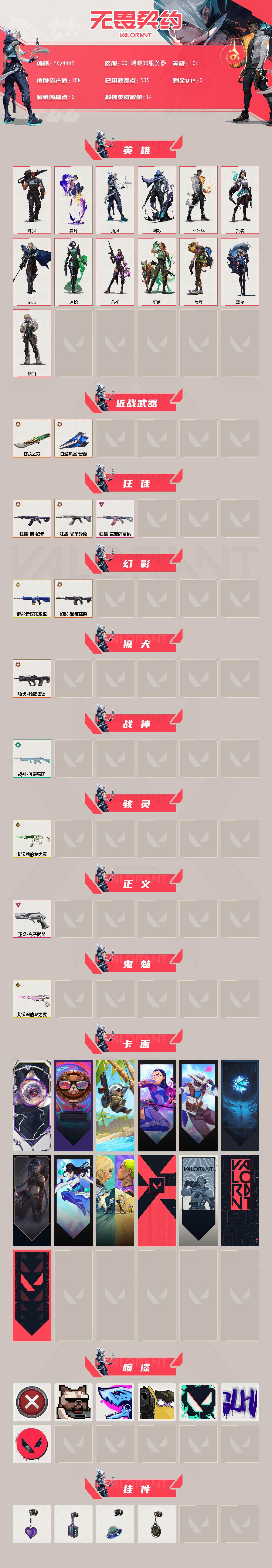 【1.8w库存苍龙之刃.三狂徒双幻影创纪元.光荣异象.盖亚.电玩.古神.离子正义】y4442【无二次】【因赛季更新游戏段付以上号为准!】 【英雄】:炼狱,暮蝶,捷风,幽影,不死鸟,贤者,猎枭,蝰蛇,芮娜,斯凯,盖可,黑梦,钢锁 【近战武器】:近战武器-5周年//公测重制版 苍龙之刃,近战武器-日耀风暴 遗器 【狂徒】:狂徒-创·纪元,狂徒-光荣异象,狂徒-盖亚的复仇 【幻影】:幻影-源能者