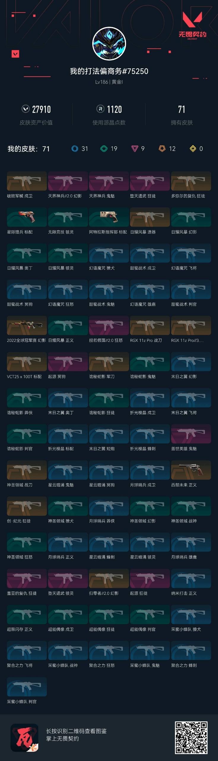 [15581157]12橙皮 9紫皮 71皮肤 19英雄 124卡面 1120已用源晶 黄金段位 【套装】曲奇套装 【近战武器皮肤】神圣领域 战刀诡秘蛇影rgx 11z pro 战刀 【佩呛皮肤】标配-vct25x100t狂怒-般若假面//2.0正义-西部未来鬼魅-天界神兵鬼魅-盖世英雄 【冲锋呛皮肤】骇灵-堕天遗武 【步呛皮肤】狂徒-创·纪元幻影-归零者//2.0多弥尔的复仇 狂徒狂徒-盖亚的复仇狂徒-起源狂徒-堕天遗武幻影-天界神兵2.0戍卫-破败军械 【狙击呛皮肤】冥驹-起源莽侠-rgx 11z pro 3.0 【挂饰】vctx100t挂饰超能偶像挂饰袖珍捷风挂饰神中神挂饰双城之战魄罗挂饰双城之战小蛋糕挂饰蓄势待滚挂饰终章ko小金人挂饰飞刀挂饰