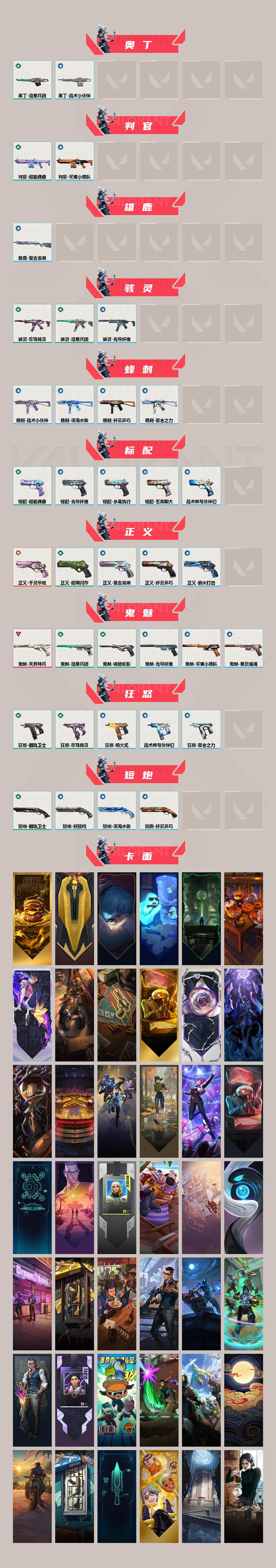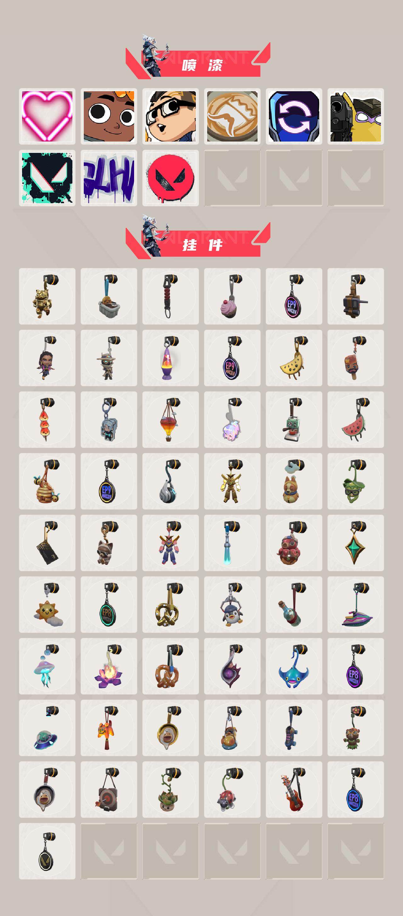 【168】【套装】:无畏契约季前邀请赛套装 【英雄】:幻棱,炼狱,维斯,暮蝶,钛狐,壹决,铁臂,捷风,雷兹,幽影,不死鸟,贤者,猎枭,蝰蛇,零,芮娜,奇乐,尚勃勒,霓虹,斯凯,夜露,星礈,k/o,海神,盖可,黑梦,钢锁 【近战武器】:近战武器-无畏契约季前邀请赛 悲悯之刃,近战武器-穿花蝴蝶,近战武器-紫金爪刀,近战武器-珍珠棘贝 短剑,近战武器-流星兵团 短剑,近战武器-超能偶像 应援棒,近战武器-钢轨卫士 战锤,近战武器-天御刀,近战武器-夜刃诡镰 【狂徒】:狂徒-混沌序曲,狂徒-奇点//2.0,狂徒-塑水宗,狂徒-盖亚的复仇,狂徒-日冕雄师,狂徒-超能偶像,狂徒-钢轨卫士,狂徒-流星兵团 【幻影】:幻影-千灵华绽,幻影-紫阙金琅//2.0,幻影-珍珠棘贝,幻影-聚合之力,幻影-战术小伙伴 【戍卫】:戍卫-紫阙金琅,戍卫-超能偶像,戍卫-钢轨卫士,戍卫-珍珠棘贝,戍卫-战术熊与伙伴们 【獠犬】:獠犬-采蜜小蜂队,獠犬-复古浪潮,獠犬-战术小伙伴 【冥驹】:冥驹-冰点凝冻,冥驹-复古浪潮 【飞将】:飞将-聚合之力,飞将-光导纤维,飞将-战术熊与伙伴们 【莽侠】:莽侠-深海水族,莽侠-纤云弄巧 【战神】:战神-采蜜小蜂队,战神-深海水族 【奥丁】:奥丁-流星兵团,奥丁-战术小伙伴 【判官】:判官-超能偶像,判官-采蜜小蜂队 【雄鹿】:雄鹿-复古浪潮 【骇灵】:骇灵-流星兵团,骇灵-珍珠棘贝,骇灵-光导纤维 【蜂刺】:蜂刺-聚合之力,蜂刺-深海水族,蜂刺-纤云弄巧,蜂刺-战术小伙伴 【标配】:标配-超能偶像,标配-光导纤维,标配-杀毒执行,标配-艺高胆大,标配-战术熊与伙伴们 【正义】:正义-千灵华绽,正义-超限闪存,正义-复古浪潮,正义-纳米打击,正义-纤云弄巧 【鬼魅】:鬼魅-天界神兵,鬼魅-流星兵团,鬼魅-诡秘蛇影,鬼魅-采蜜小蜂队,鬼魅-光导纤维,鬼魅-星云暗涌 【狂怒】:狂怒-钢轨卫士,狂怒-珍珠棘贝,狂怒-聚合之力,狂怒-喷火式,狂怒-战术熊与伙伴们 【短炮】:短炮-钢轨卫士,短炮-好搭档,短炮-深海水族,短炮-纤云弄巧 【卡面】:终章:激斗汉堡 卡面,进入射程 卡面,《双城之战》拥抱 卡面,精灵大战 卡面,欢迎来到底城 卡面,南瓜盛典 卡面,无畏契约:暮蝶 卡面,修车达人 卡面,正义的化身 卡面,终章:生意人麦宝 卡面,铁之华 卡面,失而复得 卡面,时间到 卡面,最高舞台 卡面,复活专家 卡面,归乡 // 蝰蛇 卡面,超能偶像 卡面,生意人麦宝 卡面,声感陷阱设计图 卡面,风险合作 卡面,钢锁工牌 卡面,战术小伙伴的夏日 卡面,采蜜小蜂队 卡面,聚合之力 卡面,梦幻奶茶 卡面,终章:打造专属狂徒 卡面,趁热吃 卡面,西装暴徒 卡面,失控边缘 卡面,哨卫者之领域 卡面,无畏契约:尚勃勒 卡面,暮蝶工牌 卡面,战术熊与伙伴们 卡面,源能反应 卡面,流星兵团 卡面,纤云弄巧 卡面,暂别喧嚣 卡面,打造专属狂徒 卡面,零点嗅探设计图 卡面,终章:瓦娃脸雪糕 卡面,表象之下 卡面,虹吸式咖啡壶 卡面,源能者美容 卡面,脚踝终结者 卡面 ,夜班 卡面,瓦娃脸雪糕 卡面 ,沙雕爆能器 卡面,无畏契约go!第一卷:芮娜 卡面,深海水族 卡面,珍珠棘贝 卡面,复古浪潮 卡面,盖可工牌 卡面,清除名单 卡面,无畏契约go!第一卷:零 卡面,终章:同步耍酷 卡面,龍记 卡面,化茧成蝶 卡面,比比看谁快? 卡面,蝰蛇vs幽影 卡面,势不可挡//盖可 卡面,逆向独行 卡面 ,同步耍酷 卡面,完美调谐 卡面 ,没有什么能逃过我的眼睛 卡面,光导纤维 卡面,战术小伙伴 卡面,钢轨卫士 卡面,暗呛 卡面,代号红色 卡面,新兵报到 卡面,v契约 卡面,无畏契约 卡面 【喷漆】:嗨宝南瓜灯 喷漆,嘭! 喷漆,都算到了 喷漆,控场勿近 喷漆,伤心心 喷漆,小丑猫 喷漆,熊抱 喷漆,又被闪了 喷漆,终极羞辱 喷漆,超级粉丝 喷漆,黯兽卖萌 喷漆,捷风差距 喷漆,惊声尖叫 喷漆,五人成星 喷漆,超能偶像 喷漆,放我出去 喷漆,掩护我 喷漆,大佬发呛 喷漆,边缘试探 喷漆,拼一呛 喷漆,聚合之力 喷漆,采蜜小蜂队 喷漆,梦幻小队 喷漆,五个全都齐了 喷漆,尚勃勒 喷漆,加油!加油! 喷漆,开心到爆炸 喷漆,皮蛋萌舞 喷漆,分身有术 喷漆,我觉得不行 喷漆,头号粉丝 喷漆,致命优雅 喷漆,吸一口快乐 喷漆,永远的答案 喷漆,再来一次? 喷漆,别挡我的路! 喷漆,我的刀呢? 喷漆,当然可以 喷漆,流星兵团 喷漆,战术熊与伙伴们 喷漆,禁止喷漆 喷漆,纤云弄巧 喷漆,情绪控制 喷漆,哨卫滑步 喷漆,倒吸一口凉气 喷漆,uwu 喷漆,新潮流 喷漆,逮到一个 喷漆,一个人的孤岛 喷漆,双人比心 喷漆,不予置评 喷漆,三熊合一 喷漆,要喝完噢! 喷漆,双击点赞 喷漆,珍珠棘贝 喷漆,深海水族 喷漆,禁止标配 喷漆 ,铁臂尴尬 喷漆,买装还是存钱 喷漆,醒狮贺春 喷漆,萌化了 喷漆,红鳞 喷漆,松叶 喷漆,辣得好下饭 喷漆,飓刃涂鸦 喷漆 ,旅行小熊 喷漆,战术小伙伴 喷漆,又一个梦幻组合 喷漆,是大风刮来的 喷漆 ,静电火花 喷漆 ,今天的潮声甚是喧嚣 喷漆 ,请你冷静点 喷漆 ,蕊形灯 喷漆,这是你掉的吗? 喷漆,省钱大师 喷漆 ,皇冠拉花 喷漆,该转点了 喷漆,放下武器 喷漆,胜利属于无畏契约 喷漆,glhf 喷漆,无畏契约 喷漆 【挂饰】:终章:猫猫木乃伊 挂饰,悠闲鸡块 挂饰,伞绳 挂饰,《双城之战》小蛋糕 挂饰,第九季//第三幕 纪念币 挂饰,工具腰带 挂饰,无畏契约go!第一卷 芮娜 挂饰,无畏契约go!第一卷 零 挂饰,熔岩灯 挂饰,第九季//第二幕 纪念币 挂饰,终章:这瓜保熟 挂饰,炼狱雪糕 挂饰,糖葫芦 挂饰,袖珍捷风 挂饰,冲上云霄 挂饰,超能偶像 挂饰,迷你浓缩 挂饰,这