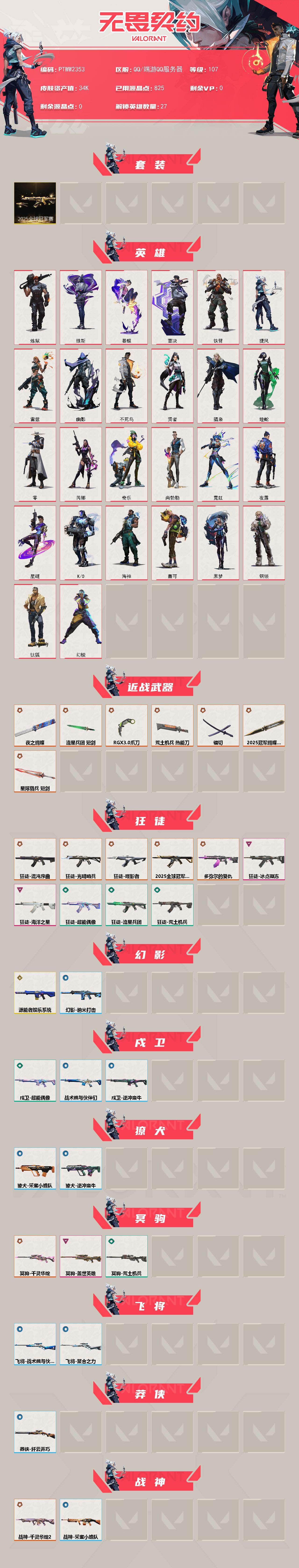 【ptww2353】终极15/传奇1/卓越5/皮肤68/等级107/段位:未定级/2025全球冠军赛套装/幻棱/炼狱/维斯/暮蝶/钛狐/壹决/铁臂/捷风/雷兹/幽影/不死鸟/贤者/猎枭/蝰蛇/零/芮娜/奇乐/尚勃勒/霓虹/夜露/星礈/k/o/海神/盖可/黑梦/钢锁/近战武器-2025全球冠军赛 蝴蝶刀/近战武器-rgx 11z pro//3.0 爪刀/近战武器-镭切/近战武器-夜之蝴蝶/近战武器-流星兵团 短剑/近战武器-荒土机兵 热能刀/近战武器-星际猎兵 短剑/狂徒-2025全球冠军赛/狂徒-光明哨兵/狂徒-混沌序曲/狂徒-噬影者/狂徒-多弥尔的复仇/狂徒-冰点凝冻/狂徒-海洋之星/狂徒-超能偶像/狂徒-荒土机兵/狂徒-流星兵团/幻影-源能者娱乐系统/幻影-纳米打击/戍卫-超能偶像/戍卫-逆冲蛮牛/戍卫-战术熊与伙伴们/獠犬-采蜜小蜂队/獠犬-逆冲蛮牛/冥驹-千灵华绽/冥驹-盖世英雄/冥驹-荒土机兵/飞将-聚合之力/飞将-战术熊与伙伴们/莽侠-纤云弄巧/战神-千灵华绽//2.0/战神-采蜜小蜂队/奥丁-流星兵团/奥丁-纳米打击/判官-超能偶像/判官-采蜜小蜂队/判官-纳米打击x/雄鹿-逆冲蛮牛/骇灵-荒土机兵/骇灵-流星兵团/蜂刺-聚合之力/蜂刺-纤云弄巧/标配-荒土机兵/标配-战术熊与伙伴们/正义-千灵华绽/正义-离子武器/正义-纳米打击/正义-纤云弄巧/鬼魅-奇幻朋克/鬼魅-流星兵团/鬼魅-采蜜小蜂队/狂怒-聚合之力/狂怒-逆冲蛮牛/狂怒-战术熊与伙伴们/短炮-纤云弄巧/进入射程 卡面/分崩离析 卡面/纳米打击 卡面/抑制技术 卡面/激斗汉堡 卡面/瓦娃脸雪糕 p2 卡面/从黄昏到黎明 卡面/荒土机兵 卡面/银弹猎手 卡面/逆冲蛮牛 卡面/《双城之战》拥抱 卡面/精灵大战 卡面/欢迎来到底城 卡面/南瓜盛典 卡面/修车达人 卡面/正义的化身 卡面/时间到 卡面/最高舞台 卡面/复活专家 卡面/归乡 // 蝰蛇 卡面/超能偶像 卡面/生意人麦宝 卡面/音熊登场 卡面/声感陷阱设计图 卡面/钢锁工牌 卡面/战术小伙伴的夏日 卡面/采蜜小蜂队 卡面/聚合之力 卡面/梦幻奶茶 卡面/终章:打造专属狂徒 卡面/趁热吃 卡面/西装暴徒 卡面/失控边缘 卡面/哨卫者之领域 卡面/暮蝶工牌 卡面/战术熊与伙伴们 卡面/源能反应 卡面/流星兵团 卡面/纤云弄巧 卡面/暂别喧嚣 卡面/打造专属狂徒 卡面/零点嗅探设计图 卡面/沙雕爆能器 卡面/清除名单 卡面/无畏契约go!第一卷:零 卡面/暗呛 卡面/铁臂设计图 卡面/代号红色 卡面/新兵报到 卡面/v契约 卡面/无畏契约 卡面/小小心意 喷漆/战“素”兔 喷漆/宇宙的指引 喷漆/请求重启 喷漆/逆冲蛮牛 喷漆/纳米打击 喷漆/鼻尖上的蝴蝶 喷漆/简笔画黯兽 喷漆/独守蝰腹 喷漆/他们将落荒而逃 喷漆/通缉:战术企鹅 喷漆/荒土机兵 喷漆/别挡我吃球! 喷漆/嗨宝南瓜灯 喷漆/嘭! 喷漆/都算到了 喷漆/控场勿近 喷漆/熊抱 喷漆/超级粉丝 喷漆/捷风差距 喷漆/惊声尖叫 喷漆/五人成星 喷漆/超能偶像 喷漆/放我出去 喷漆/战术熊的巴拉莱卡琴 喷漆/掩护我 喷漆/大佬发呛 喷漆/边缘试探 喷漆/拼一呛 喷漆/聚合之力 喷漆/采蜜小蜂队 喷漆/梦幻小队 喷漆/五个全都齐了 喷漆/加油!加油! 喷漆/开心到爆炸 喷漆/皮蛋萌舞 喷漆/我觉得不行 喷漆/头号粉丝 喷漆/吸一口快乐 喷漆/永远的答案 喷漆/再来一次? 喷漆/别挡我的路! 喷漆/我的刀呢? 喷漆/当然可以 喷漆/流星兵团 喷漆/战术熊与伙伴们 喷漆/禁止喷漆 喷漆/纤云弄巧 喷漆/双击点赞 喷漆/买装还是存钱 喷漆/胜利属于无畏契约 喷漆/glhf 喷漆/无畏契约 喷漆/第九季:超凡 挂饰/第八季:超凡 挂饰/终章:猫猫木乃伊 挂饰/荒土机兵 挂饰/悠闲鸡块 挂饰/猫猫木乃伊 挂饰/水壶 挂饰/纳米打击 挂饰/逆冲蛮牛 挂饰/可爱糖糖 挂饰/伞绳 挂饰/《双城之战》小蛋糕 挂饰/第九季//第三幕 纪念币 挂饰/熔岩灯 挂饰/第九季//第二幕 纪念币 挂饰/炼狱雪糕 挂饰/袖珍捷风 挂饰/冲上云霄 挂饰/超能偶像 挂饰/迷你浓缩 挂饰/尤克里里 挂饰/这瓜保熟 挂饰/采蜜小蜂队 挂饰/第九季//第一幕 纪念币 挂饰/聚合之力 挂饰/终章:迷你机甲 挂饰/犯困的布鲁诺 挂饰/战术河童 挂饰/招财猫熊 挂饰/迷你机甲 挂饰/荧光棒 挂饰/章鱼烧先生 挂饰/流星兵团 挂饰/云开见日 挂饰/第八季//第三幕 纪念币 挂饰/第八季//第二幕 纪念币 挂饰 /第七季//第三幕 纪念币 挂饰/无畏契约 纪念币 挂饰