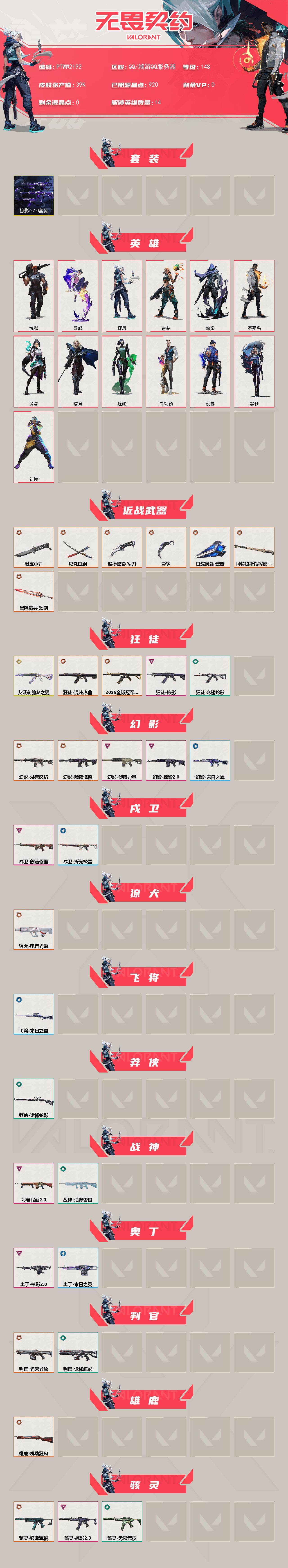 【ptww2192】终极17/传奇1/卓越8/皮肤78/等级148/段位:黑铁/掠影//2.0套装/幻棱/炼狱/暮蝶/捷风/雷兹/幽影/不死鸟/贤者/猎枭/蝰蛇/尚勃勒/夜露/黑梦/近战武器-影钩/近战武器-剥皮小刀/近战武器-鬼丸国纲/近战武器-诡秘蛇影 军刀/近战武器-日耀风暴 遗器/近战武器-阿特拉斯指挥部 甩棍/近战武器-星际猎兵 短剑/狂徒-艾沃莉的梦之翼/狂徒-2025全球冠军赛/狂徒-混沌序曲/狂徒-掠影/狂徒-诡秘蛇影/幻影-黯夜怪谈/幻影-洪荒怒焰/幻影-侦察力量/幻影-掠影//2.0/幻影-末日之翼/戍卫-般若假面/戍卫-折光棱晶/獠犬-电音光谱/飞将-末日之翼/莽侠-诡秘蛇影/战神-般若假面//2.0/战神-浪漫雪国/奥丁-掠影//2.0/奥丁-末日之翼/判官-光荣异象/判官-诡秘蛇影/雄鹿-机动狂飙/骇灵-破败军械/骇灵-掠影//2.0/骇灵-无限竞技/蜂刺-混沌序曲/蜂刺-折光棱晶/标配-折光棱晶/标配-vct25 x blg/鬼魅-掠影//2.0/鬼魅-诡秘蛇影/鬼魅-灵魂消声者/鬼魅-扑棱扑棱/短炮-末日之翼/无畏契约:暮蝶 卡面/战术桌游 卡面/树懒大作战 卡面/clutch 卡面/失控边缘 卡面/战术熊与伙伴们 卡面/无畏契约go!第一卷:芮娜 卡面/复古浪潮 卡面/无畏契约go!第一卷:零 卡面/《双城之战》金克丝 卡面/无畏契约go!第一卷:贤者 卡面/钢锁vs盖可 卡面/"luie" 卡面/代号红色 卡面/新兵报到 卡面/v契约 卡面/无畏契约 卡面/伤心心 喷漆/吸一口快乐 喷漆/永远的答案 喷漆/买装还是存钱 喷漆/萌化了 喷漆/酷熊冲浪 喷漆/无畏契约go!第一卷:芮娜 喷漆/红鳞 喷漆/松叶 喷漆/无畏契约go!第一卷:奇乐 喷漆/飓刃涂鸦 喷漆 /放下武器 喷漆/胜利属于无畏契约 喷漆/glhf 喷漆/无畏契约 喷漆/悠闲鸡块 挂饰/无畏契约go!第一卷 零 挂饰/鱼骨头 挂饰/薰衣草之心 挂饰/z世代特饮 挂饰/天外飞客 挂饰/《双城之战》魄罗 挂饰/无畏契约 纪念币 挂饰