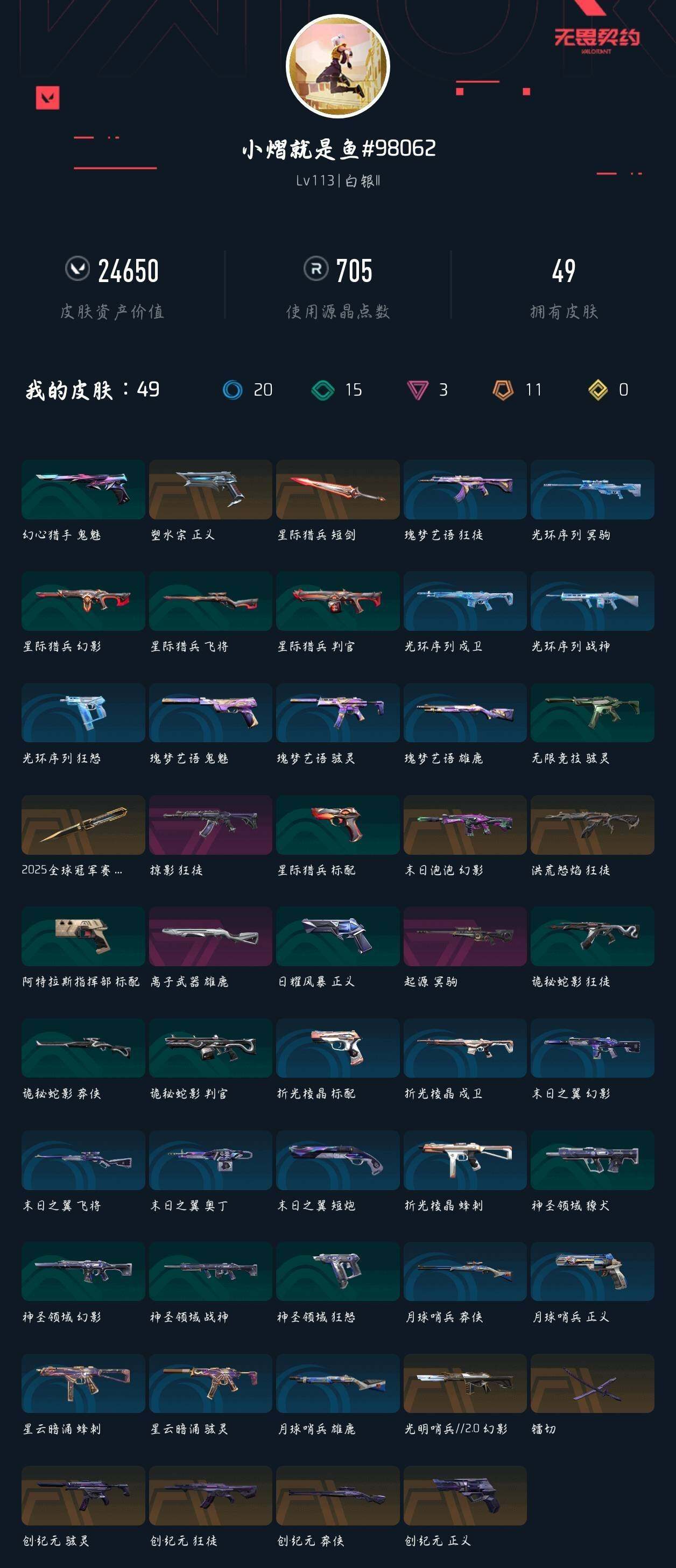 [16021423]【套装】:创·纪元套装 【英雄】:幻棱,炼狱,维斯,暮蝶,钛狐,壹决,铁臂,捷风,雷兹,幽影,不死鸟,贤者,猎枭,蝰蛇,零,芮娜,奇乐,尚勃勒,霓虹,斯凯,夜露,星礈,k/o,海神,盖可,黑梦,钢锁 【近战武器】:近战武器-2025全球冠军赛 蝴蝶刀,近战武器-镭切,近战武器-星际猎兵 短剑 【狂徒】:狂徒-洪荒怒焰,狂徒-创·纪元,狂徒-掠影,狂徒-诡秘蛇影 【幻影】:幻影-光明哨兵//2.0,幻影-末日泡泡,幻影-神圣领域,幻影-末日之翼 【戍卫】:戍卫-折光棱晶 【獠犬】:獠犬-神圣领域 【冥驹】:冥驹-起源 【飞将】:飞将-末日之翼 【莽侠】:莽侠-创·纪元,莽侠-诡秘蛇影,莽侠-月球哨兵 【战神】:战神-神圣领域 【奥丁】:奥丁-末日之翼 【判官】:判官-诡秘蛇影 【雄鹿】:雄鹿-离子武器,雄鹿-月球哨兵 【骇灵】:骇灵-创·纪元,骇灵-无限竞技,骇灵-星云暗涌 【蜂刺】:蜂刺-星云暗涌,蜂刺-折光棱晶 【标配】:标配-折光棱晶 【正义】:正义-塑水宗,正义-创·纪元,正义-月球哨兵 【狂怒】:狂怒-神圣领域 【短炮】:短炮-末日之翼 【卡面】:激斗汉堡 卡面,精灵大战 卡面,南瓜盛典 卡面,正义的化身 卡面,无畏契约go!第一卷:芮娜 卡面,无畏契约go!第一卷:零 卡面,钢锁vs盖可 卡面,代号红色 卡面,新兵报到 卡面,v契约 卡面,无畏契约 卡面 【喷漆】:控场勿近 喷漆,又被闪了 喷漆,五人成星 喷漆,买装还是存钱 喷漆,关门放狗 喷漆,红鳞 喷漆,松叶 喷漆,胜利属于无畏契约 喷漆,glhf 喷漆,无畏契约 喷漆 【挂饰】:第九季//第三幕 纪念币 挂饰,无畏契约go!第一卷 芮娜 挂饰,无畏契约go!第一卷 零 挂饰,第九季//第二幕 纪念币 挂饰,天外飞客 挂饰,无畏契约 纪念币 挂饰