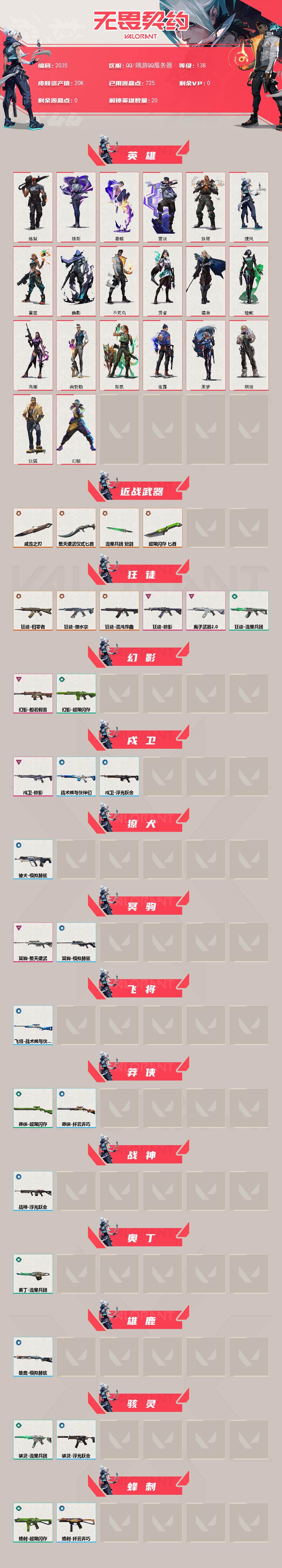 [16021840]【英雄】:幻棱,炼狱,维斯,暮蝶,钛狐,壹决,铁臂,捷风,雷兹,幽影,不死鸟,贤者,猎枭,蝰蛇,芮娜,尚勃勒,斯凯,夜露,黑梦,钢锁