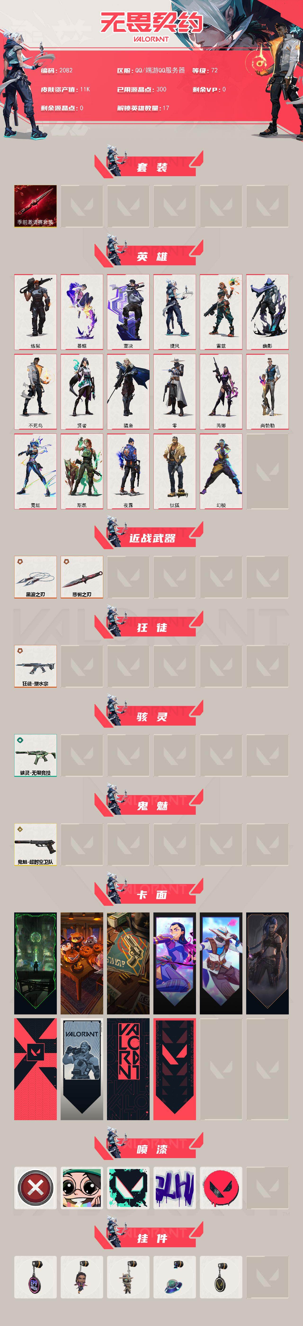 [16021940]【套装】:无畏契约季前邀请赛套装,无畏契约季前邀请赛套装 【英雄】:幻棱,炼狱,暮蝶,钛狐,壹决,捷风,雷兹,幽影,不死鸟,贤者,猎枭,零,芮娜,尚勃勒,霓虹,斯凯,夜露,幻棱,炼狱,暮蝶,钛狐,壹决,捷风,雷兹,幽影,不死鸟,贤者,猎枭,零,芮娜,尚勃勒,霓虹,斯凯,夜露 【近战武器】:近战武器-无畏契约季前邀请赛 悲悯之刃,近战武器-黑波之刃,近战武器-无畏契约季前邀请赛 悲悯之刃,近战武器-黑波之刃 【狂徒】:狂徒-塑水宗,狂徒-塑水宗 【骇灵】:骇灵-无限竞技,骇灵-无限竞技 【鬼魅】:鬼魅-超时空卫队,鬼魅-超时空卫队 【卡面】:欢迎来到底城 卡面,南瓜盛典 卡面,正义的化身 卡面,无畏契约go!第一卷:芮娜 卡面,无畏契约go!第一卷:零 卡面,《双城之战》金克丝 卡面,代号红色 卡面,新兵报到 卡面,v契约 卡面,无畏契约 卡面,欢迎来到底城 卡面,南瓜盛典 卡面,正义的化身 卡面,无畏契约go!第一卷:芮娜 卡面,无畏契约go!第一卷:零 卡面,《双城之战》金克丝 卡面,代号红色 卡面,新兵报到 卡面,v契约 卡面,无畏契约 卡面 【喷漆】:买装还是存钱 喷漆,萌化了 喷漆,胜利属于无畏契约 喷漆,glhf 喷漆,无畏契约 喷漆,买装还是存钱 喷漆,萌化了 喷漆,胜利属于无畏契约 喷漆,glhf 喷漆,无畏契约 喷漆 【挂饰】:v25第六幕:超凡 挂饰,第九季//第三幕 纪念币 挂饰,无畏契约go!第一卷 芮娜 挂饰,无畏契约go!第一卷 零 挂饰,天外飞客 挂饰,无畏契约 纪念币 挂饰,v25第六幕:超凡 挂饰,第九季//第三幕 纪念币 挂饰,无畏契约go!第一卷 芮娜 挂饰,无畏契约go!第一卷 零 挂饰,天外飞客 挂饰,无畏契约 纪念币 挂饰