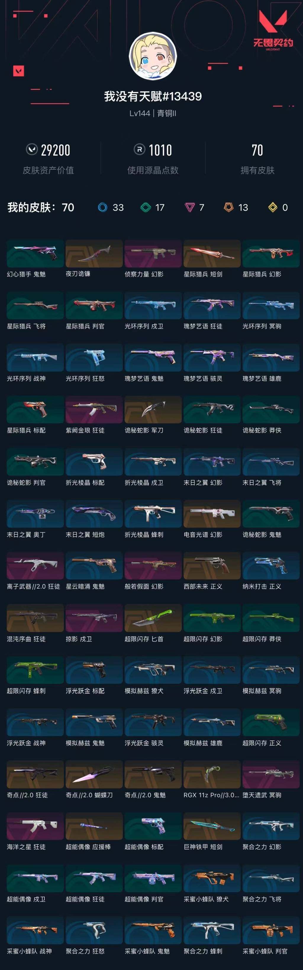 [16021957]【套装】:奇点//2.0套装 【英雄】:幻棱,炼狱,维斯,暮蝶,钛狐,壹决,铁臂,捷风,雷兹,幽影,不死鸟,贤者,猎枭,蝰蛇,零,芮娜,奇乐,尚勃勒,霓虹,夜露,星礈,k/o,海神,盖可,黑梦,钢锁 【近战武器】:近战武器-奇点//2.0 蝴蝶刀,近战武器-rgx 11z pro//3.0 爪刀,近战武器-巨神铁甲 短剑,近战武器-超能偶像 应援棒,近战武器-超限闪存 匕首,近战武器-夜刃诡镰,近战武器-诡秘蛇影 军刀,近战武器-星际猎兵 短剑 【狂徒】:狂徒-混沌序曲,狂徒-奇点//2.0,狂徒-海洋之星,狂徒-紫阙金琅,狂徒-离子武器//2.0,狂徒-超能偶像,狂徒-诡秘蛇影 【幻影】:幻影-电音光谱,幻影-般若假面,幻影-侦察力量,幻影-超限闪存,幻影-聚合之力,幻影-末日之翼,幻影-电音光谱 【戍卫】:戍卫-掠影,戍卫-超能偶像,戍卫-浮光跃金,戍卫-折光棱晶 【獠犬】:獠犬-采蜜小蜂队,獠犬-模拟赫兹 【冥驹】:冥驹-堕天遗武,冥驹-模拟赫兹 【飞将】:飞将-聚合之力,飞将-末日之翼 【莽侠】:莽侠-超限闪存,莽侠-诡秘蛇影 【战神】:战神-采蜜小蜂队,战神-浮光跃金 【奥丁】:奥丁-末日之翼 【判官】:判官-超能偶像,判官-诡秘蛇影,判官-采蜜小蜂队 【雄鹿】:雄鹿-模拟赫兹 【骇灵】:骇灵-浮光跃金 【蜂刺】:蜂刺-超限闪存,蜂刺-聚合之力,蜂刺-折光棱晶 【标配】:标配-超能偶像,标配-浮光跃金,标配-折光棱晶 【正义】:正义-西部未来,正义-超限闪存,正义-纳米打击 【鬼魅】:鬼魅-奇点//2.0,鬼魅-诡秘蛇影,鬼魅-采蜜小蜂队,鬼魅-模拟赫兹,鬼魅-星云暗涌 【狂怒】:狂怒-聚合之力 【短炮】:短炮-末日之翼 【卡面】:终章:激斗汉堡 卡面,进入射程 卡面,《双城之战》拥抱 卡面,精灵大战 卡面,欢迎来到底城 卡面,南瓜盛典 卡面,vct cn首冠 卡面,唱片的故事 卡面,钢弓与箭弦 卡面,排除故障 卡面,奇点//2.0 卡面,战术桌游 卡面,悠享食光 卡面,修车达人 卡面,热舞环节 卡面,模拟赫兹 卡面,浮光跃金 卡面,超限闪存 卡面,维斯工牌 卡面,正义的化身 卡面,终章:生意人麦宝 卡面,铁之华 卡面,失而复得 卡面,时间到 卡面,最高舞台 卡面,复活专家 卡面,归乡 // 蝰蛇 卡面,超能偶像 卡面,生意人麦宝 卡面,声感陷阱设计图