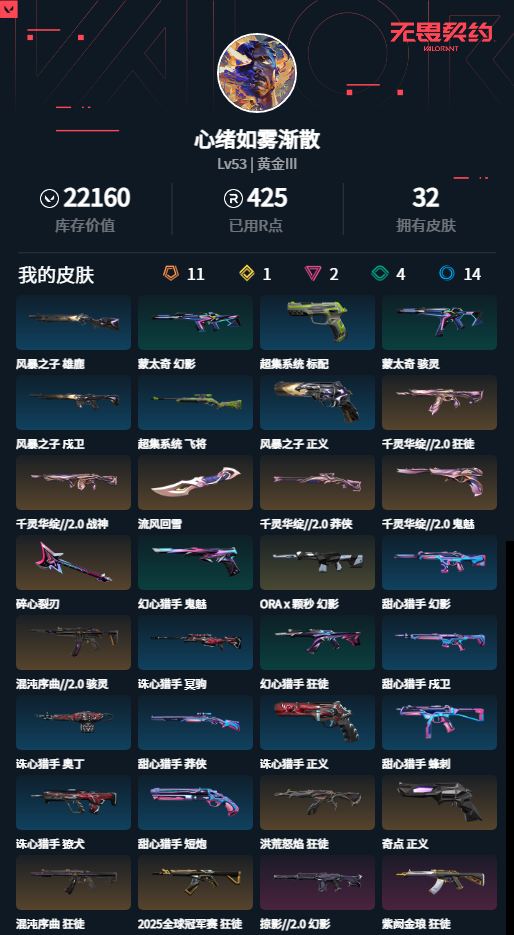 [16022668]wl616/【账号状态】无封号/【区服】qq/【游戏等级】lv53/【游戏段位】黄金iii/【剩余v点】89/【剩余r点】25/【皮肤资产价值】22160/【使用r点】425/【英雄数量】15/【皮肤数量】32/【卡面数量】43/【喷漆数量】44/【挂件数量】28/【拥有套装】千灵华绽//2.0套装(千灵华绽//2.0-狂徒/千灵华绽//2.0-战神/千灵华绽//2.0-莽侠/千灵华绽//2.0-鬼魅/流风回雪)/【拥有近战武器】碎心裂刃//【拥有步呛】混沌序曲-狂徒/洪荒怒焰-狂徒/2025全球冠军赛-狂徒/a-x-颗秒-幻影/掠影//2.0-幻影/紫阙金琅-狂徒/蒙太奇-幻影/幻心猎手-狂徒/风暴之子-戍卫/甜心猎手-幻影/甜心猎手-戍卫/诛心猎手-獠犬//【拥有狙击呛】超集系统-飞将/诛心猎手-冥驹/甜心猎手-莽侠//【拥有机呛】诛心猎手-奥丁//【拥有冲锋呛】混沌序曲//2.0-骇灵/蒙太奇-骇灵/甜心猎手-蜂刺//【拥有霰弹呛】风暴之子-雄鹿//【拥有手呛】奇点-正义/幻心猎手-鬼魅/超集系统-标配/风暴之子-正义/诛心猎手-正义/甜心猎手-短炮//【稀有挂件】v25第六幕白银挂饰/千灵华绽20挂饰/无畏契约go第一卷捷风挂饰/无畏契约go第一卷奇乐挂饰/无畏契约go第一卷零挂饰//【卡面信息】千灵华绽20卡面/找回包赔
