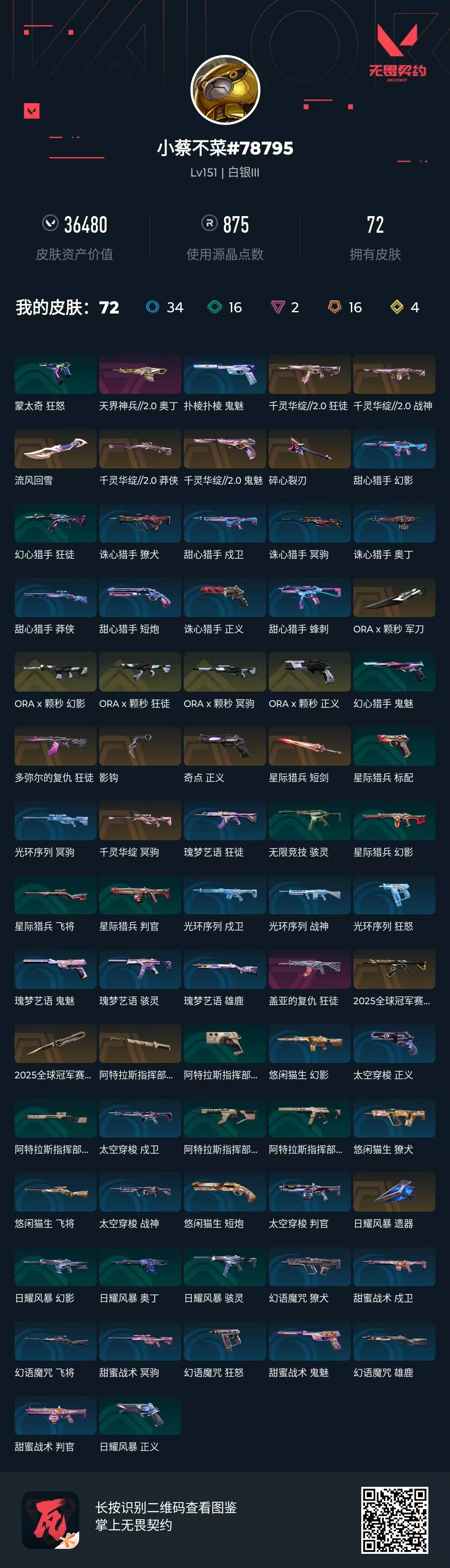 [16030636]s193244 (2025全球冠军赛套装/a-x-颗秒套装/千灵华绽//2.0套装)无畏契约/等级151/段位白银/英雄26/皮肤72/资产36480/已使用r点875/剩余r点0/ 2025全球冠军赛-狂徒2025全球冠军赛-蝴蝶刀,a-x-颗秒-狂徒a-x-颗秒-幻影a-x-颗秒-冥驹a-x-颗秒-正义a-x-颗秒-军刀,千灵华绽//2.0-狂徒千灵华绽//2.0-战神千灵华绽//2.0-莽侠千灵华绽//2.0-鬼魅流风回雪,多弥尔的复仇-狂徒,盖亚的复仇-狂徒,碎心裂刃,星际猎兵-短剑,阿特拉斯指挥部-甩棍,日耀风暴-遗器,影钩,千灵华绽-冥驹,天界神兵//2.0-奥丁,奇点-正义