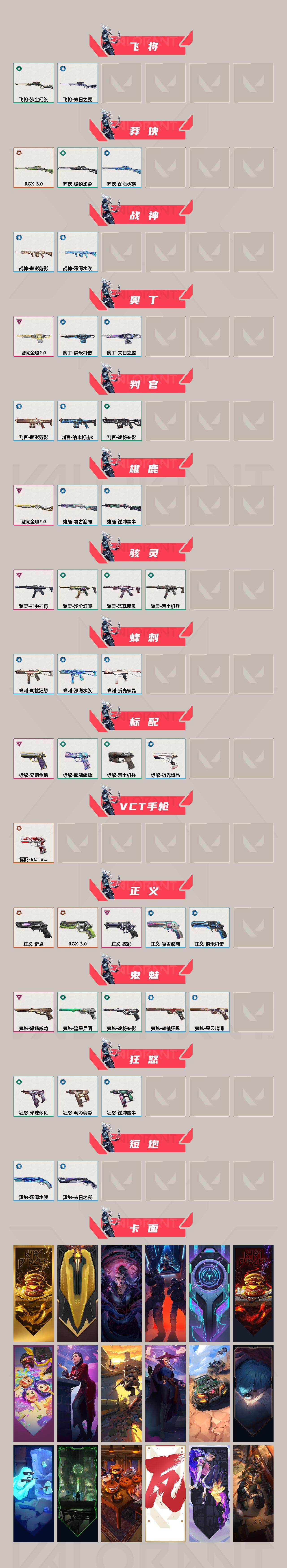 【1398】xl33627 【套装】:2025全球冠军赛套装,2022全球冠军赛套装,rgx 11z pro//3.0套装,掠影套装,耀鳞威龙套装 【英雄】:幻棱,炼狱,维斯,暮蝶,钛狐,壹决,铁臂,捷风,雷兹,幽影,不死鸟,贤者,猎枭,蝰蛇,零,芮娜,奇乐,尚勃勒,霓虹,斯凯,夜露,星礈,k/o,海神,盖可,黑梦,钢锁 【近战武器】:近战武器-2025全球冠军赛 蝴蝶刀,近战武器-2022全球冠军赛 蝴蝶刀,近战武器-rgx 11z pro//3.0 爪刀,近战武器-黑波之刃,近战武器-艾沃莉的魔法棒,近战武器-威龙之刃,近战武器-珍珠棘贝 短剑,近战武器-荒土机兵 热能刀,近战武器-天御刀,近战武器-影刃,近战武器-诡秘蛇影 军刀,近战武器-日耀风暴 遗器,近战武器-星际猎兵 短剑 【狂徒】:狂徒-2025全球冠军赛,狂徒-归零者,狂徒-混沌序曲,狂徒-塑水宗,狂徒-多弥尔的复仇,狂徒-冰点凝冻,狂徒-掠影,狂徒-盖亚的复仇,狂徒-耀鳞威龙,狂徒-紫阙金琅,狂徒-荒土机兵,狂徒-诡秘蛇影 【幻影】:幻影-2022全球冠军赛,幻影-破败军械,幻影-侦察力量,幻影-紫阙金琅//2.0,幻影-珍珠棘贝,幻影-纳米打击,幻影-末日之翼 【戍卫】:戍卫-掠影,戍卫-珍珠棘贝,戍卫-萌彩剪影,戍卫-逆冲蛮牛,戍卫-折光棱晶 【獠犬】:獠犬-全息波普,獠犬-复古浪潮,獠犬-胡桃狂想,獠犬-逆冲蛮牛 【冥驹】:冥驹-偃月苍龙,冥驹-掠影,冥驹-盖世英雄,冥驹-无垠星环,冥驹-荒土机兵,冥驹-复古浪潮,冥驹-胡桃狂想 【飞将】:飞将-沙尘幻旅,飞将-末日之翼 【莽侠】:莽侠-rgx 11z pro//3.0,莽侠-诡秘蛇影,莽侠-深海水族 【战神】:战神-萌彩剪影,战神-深海水族 【奥丁】:奥丁-紫阙金琅//2.0,奥丁-纳米打击,奥丁-末日之翼 【判官】:判官-诡秘蛇影,判官-萌彩剪影,判官-纳米打击x 【雄鹿】:雄鹿-紫阙金琅//2.0,雄鹿-复古浪潮,雄鹿-逆冲蛮牛 【骇灵】:骇灵-神中神罚,骇灵-荒土机兵,骇灵-沙尘幻旅,骇灵-珍珠棘贝 【蜂刺】:蜂刺-胡桃狂想,蜂刺-深海水族,蜂刺-折光棱晶 【标配】:标配-紫阙金琅,标配-超能偶像,标配-荒土机兵,标配-折光棱晶 【vct手呛】:标配-vct x t1 【正义】:正义-rgx 11z pro//3.0,正义-奇点,正义-掠影,正义-复古浪潮,正义-纳米打击 【鬼魅】:鬼魅-耀鳞威龙,鬼魅-流星兵团,鬼魅-诡秘蛇影,鬼魅-胡桃狂想,鬼魅-星云暗涌 【狂怒】:狂怒-珍珠棘贝,狂怒-萌彩剪影,狂怒-逆冲蛮牛 【短炮】:短炮-深海水族,短炮-末日之翼 【卡面】:终章:激斗汉堡 卡面,进入射程 卡面,分崩离析 卡面,纳米打击 卡面,抑制技术 卡面,激斗汉堡 卡面,瓦娃脸雪糕 p2 卡面,从黄昏到黎明 卡面,荒土机兵 卡面,银弹猎手 卡面,逆冲蛮牛 卡面,《双城之战》拥抱 卡面,精灵大战 卡面,欢迎来到底城 卡面,南瓜盛典 卡面,vct cn首冠 卡面,无畏契约:暮蝶 卡面,修车达人 卡面,热舞环节 卡面,正义的化身 卡面,终章:生意人麦宝 卡面,铁之华 卡面,时间到 卡面,最高舞台 卡面,rgx 11z pro//3.0 卡面,树懒大作战 卡面,声感陷阱设计图 卡面,红鳞松叶 卡面,clutch 卡面,霓帧牛蛙 卡面,采蜜小蜂队 卡面,梦幻奶茶 卡面,终章:打造专属狂徒 卡面,趁热吃 卡面,艺无止境//全球冠军赛 卡面,源能反应 卡面,零点嗅探设计图 卡面,表象之下 卡面,虹吸式咖啡壶 卡面,源能者美容 卡面,脚踝终结者 卡面 ,夜班 卡面,瓦娃脸雪糕 卡面 ,沙雕爆能器 卡面,无畏契约go!第一卷:芮娜 卡面,深海水族 卡面,珍珠棘贝 卡面,复古浪潮 卡面,盖可工牌 卡面,清除名单 卡面,无畏契约go!第一卷:零 卡面,龍记 卡面,比比看谁快? 卡面,《双城之战》金克丝 卡面,势不可挡//盖可 卡面,完美调谐 卡面 ,暗呛 卡面,无畏契约go!第一卷:贤者 卡面,钢锁vs盖可 卡面,别冒尖 卡面,黑影先生的咖啡! 卡面,天台狂欢 卡面,胡桃狂想 卡面,沙尘幻旅 卡面,壹决工牌 卡面,萌彩剪影 卡面,势不可挡//k/o 卡面,夯实根基 卡面,"luie" 卡面,热烈欢迎 卡面,铁臂设计图 卡面,代号红色 卡面,新兵报到 卡面,v契约 卡面,无畏契约 卡面 【喷漆】:小小心意 喷漆,战“素”兔 喷漆,宇宙的指引 喷漆,请求重启 喷漆,逆冲蛮牛 喷漆,纳米打击 喷漆,鼻尖上的蝴蝶 喷漆,简笔画黯兽 喷漆,独守蝰腹 喷漆,他们将落荒而逃 喷漆,通缉:战术企鹅 喷漆,荒土机兵 喷漆,别挡我吃球! 喷漆,嗨宝南瓜灯 喷漆,嘭! 喷漆,都算到了 喷漆,控场勿近 喷漆,伤心心 喷漆,熊抱 喷漆,蛋糕还是爆能器? 喷漆,超级粉丝 喷漆,捷风差距 喷漆,惊声尖叫 喷漆,水晶球 喷漆,2021冠军巡回赛花火 喷漆,rgx 11z pro//3.0 喷漆,战术熊的巴拉莱卡琴 喷漆,审判之爪 喷漆,拼一呛 喷漆,梦幻小队 喷漆,我觉得不行 喷漆,我的刀呢? 喷漆,情绪控制 喷漆,哨卫滑步 喷漆,倒吸一口凉气 喷漆,uwu 喷漆,新潮流 喷漆,逮到一个 喷漆,一个人的孤岛 喷漆,双人比心 喷漆,不予置评 喷漆,三熊合一 喷漆,要喝完噢! 喷漆,双击点赞 喷漆,珍珠棘贝 喷漆,深海水族 喷漆,禁止标配 喷漆 ,铁臂尴尬 喷漆,买装还是存钱 喷漆,醒狮贺春 喷漆,关门放狗 喷漆,萌化了 喷漆,酷熊冲浪 喷漆,无畏契约go!第一卷:芮娜 喷漆,暴走萝莉 喷漆,无畏契约go!第一卷:奇乐 喷漆,飓刃涂鸦 喷漆 ,旅行小熊 喷漆,战术小伙伴 喷漆,蕊形灯 喷漆,凌空惊吓 喷漆,再吃最后一口 喷漆,我一个滑铲 喷漆,放手一搏 喷漆,沙尘幻旅 喷漆,萌彩剪影 喷漆,电烫 喷漆,暗中偷瞄 喷漆,胡桃狂想 喷漆,红牌退场 喷漆,爆泉领域 喷漆,老铁困了 喷漆,口袋贤者 喷漆,胜利属于无畏契约 喷漆,glhf 喷漆,无畏契约 喷漆 【挂饰】:终章:猫猫木乃伊 挂饰,荒土机兵