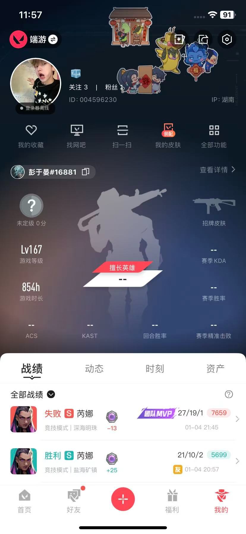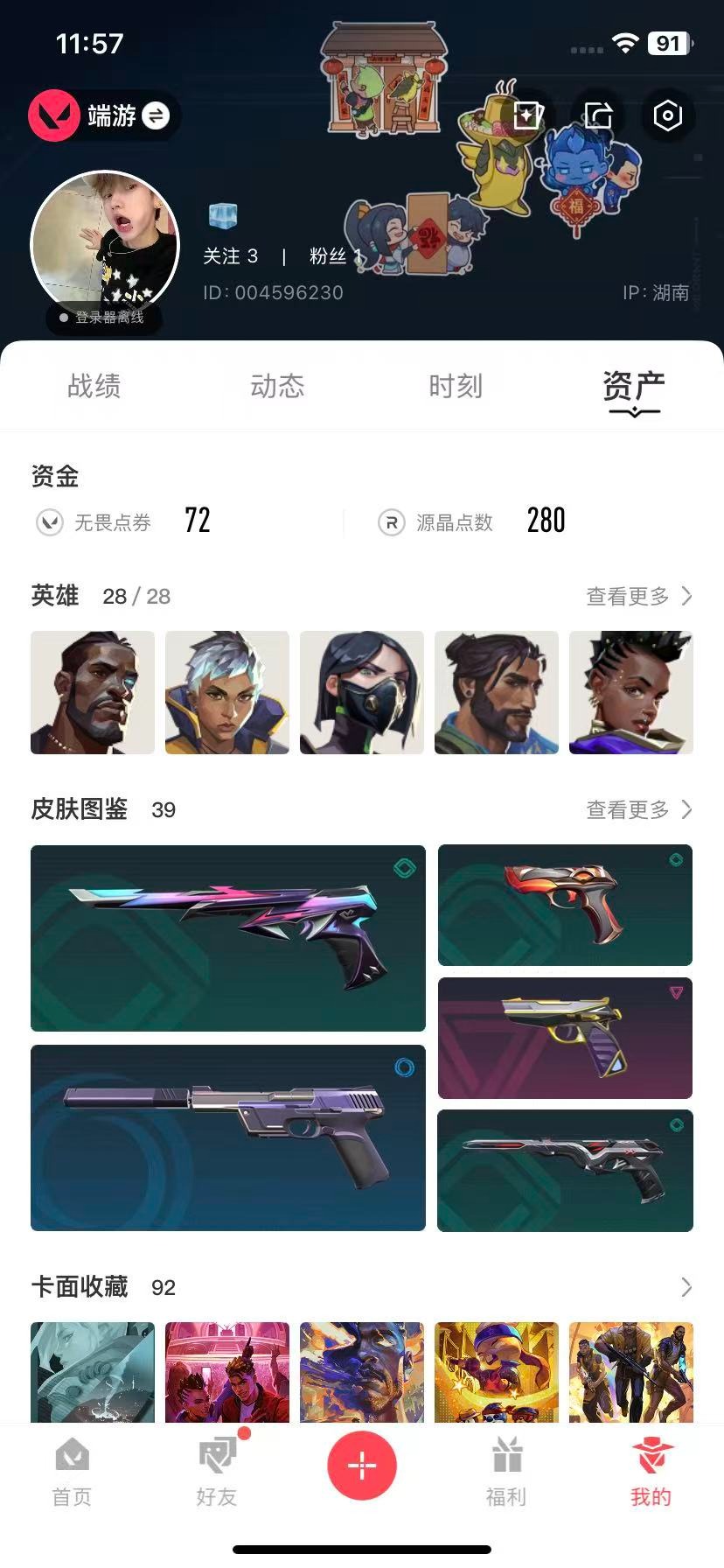 7橙皮 6紫皮 39皮肤 28英雄 92卡面 670已用源晶 未定级段位 【近战武器皮肤】匕首-超限闪存爪刀-rgx 11z pro 3.0夜之蝴蝶 【佩呛皮肤】正义-奇点鬼魅-奇幻朋克标配-紫阙金琅 【冲锋呛皮肤】骇灵-源能者危机001 【步呛皮肤】狂徒-盖亚的复仇狂徒-塑水宗狂徒-