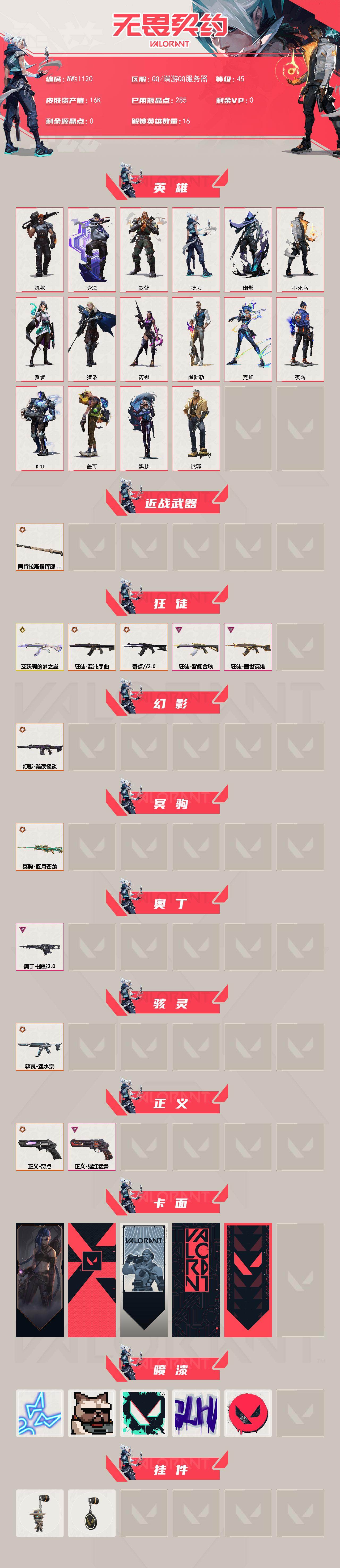 【wwx1120】终极7/传奇1/卓越4/皮肤24/等级45/段位:未定级/炼狱/钛狐/壹决/铁臂/捷风/幽影/不死鸟/贤者/猎枭/芮娜/尚勃勒/霓虹/夜露/k/o/盖可/黑梦/近战武器-阿特拉斯指挥部 甩棍/狂徒-艾沃莉的梦之翼/混沌序曲-狂徒/奇点//2.0-狂徒/狂徒-盖世英雄/狂徒-紫阙金琅/黯夜怪谈-幻影/冥驹-偃月苍龙/奥丁-掠影//2.0/骇灵-塑水宗/奇点-正义/猩红
