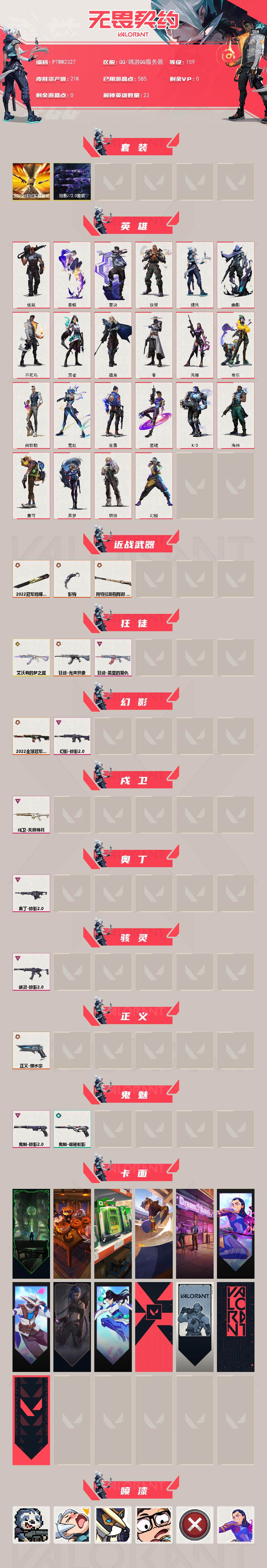 【ptww2327】终极6/传奇1/卓越6/皮肤29/等级159/段位:白银/2022全球冠军赛套装/掠影//2.0套装/幻棱/炼狱/暮蝶/壹决/铁臂/捷风/幽影/不死鸟/贤者/猎枭/零/芮娜/奇乐/尚勃勒/霓虹/夜露/星礈/k/o/海神/盖可/黑梦/钢锁/近战武器-2022全球冠军赛 蝴蝶刀/近战武器-影钩/近战武器-阿特拉斯指挥部 甩棍/狂徒-艾沃莉的梦之翼/狂徒-光荣异象/盖亚