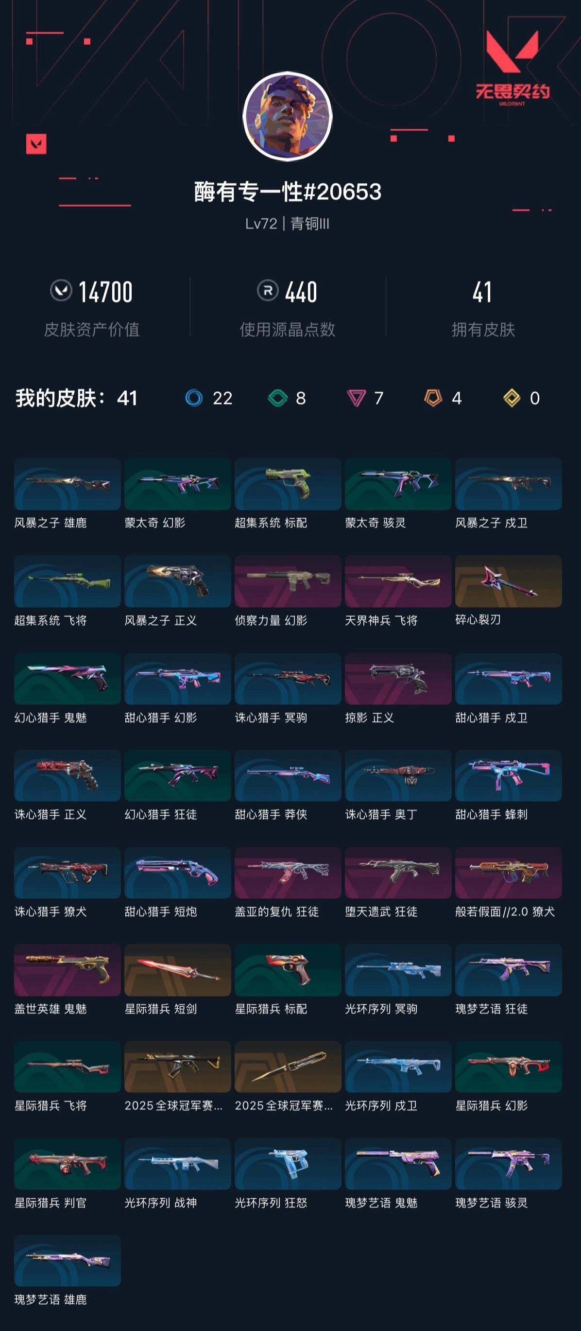 [16088081]【套装】:2025全球冠军赛套装 【英雄】:幻棱,炼狱,暮蝶,壹决,铁臂,捷风,雷兹,不死鸟,贤者,猎枭,零,芮娜,奇乐,霓虹,夜露,k/o,盖可,黑梦,钢锁 【近战武器】:近战武器-2025全球冠军赛 蝴蝶刀,近战武器-星际猎兵 短剑 【狂徒】:狂徒-2025全球冠军赛,狂徒-堕天遗武,狂徒-盖亚的复仇 【幻影】:幻影-侦察力量 【獠犬】:獠犬-般若假面//2.0 【飞将】:飞将-天界神兵