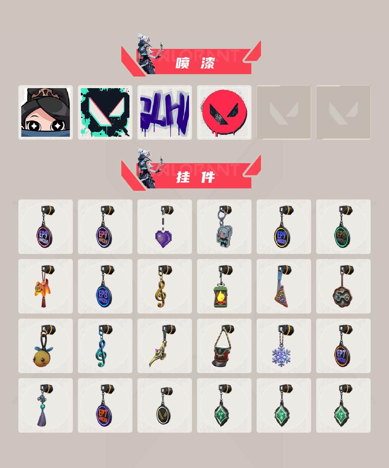【套装】:2023全球冠军赛套装,《英雄联盟:双城之战》套装,归零者套装,侦察力量套装,盖亚的复仇套装 【英雄】:炼狱,维斯,暮蝶,壹决,铁臂,捷风,雷兹,幽影,不死鸟,贤者,猎枭,蝰蛇,零,芮娜,奇乐,尚勃勒,霓虹,斯凯,夜露,星礈,k/o,海神,盖可,黑梦,钢锁 【近战武器】:近战武器-2023全球冠军赛 苦无,近战武器-侦察力量 蝴蝶刀,近战武器-剥皮小刀,近战武器-盖亚之怒,近战武器-合金战车 军刀,近战武器-弧光异彩 军刀,近战武器-沙尘幻旅 匕首,近战武器-生物收割器 【狂徒】:狂徒-2023全球冠军赛,狂徒-归零者,狂徒-盖亚的复仇,狂徒-紫阙金琅,狂徒-弧光异彩,狂徒-沙尘幻旅 【幻影】:幻影-奇点,幻影-侦察力量,幻影-合金战车,幻影-噬源兽防卫工程 【戍卫】:戍卫-盖亚的复仇,戍卫-侦察力量,戍卫-彩梦之城,戍卫-花漾粉红,戍卫-萌彩剪影 【獠犬】:獠犬-归零者,獠犬-弧光异彩,獠犬-胡桃狂想,獠犬-数码咒术 【冥驹】:冥驹-归零者,冥驹-胡桃狂想,冥驹-花漾粉红 【飞将】:飞将-盖亚的复仇,飞将-合金战车,飞将-沙尘幻旅,飞将-信手涂鸦 【战神】:战神-萌彩剪影,战神-数码咒术 【奥丁】:奥丁-信手涂鸦 【判官】:判官-萌彩剪影,判官-数码咒术 【雄鹿】:雄鹿-彩梦之城 【骇灵】:骇灵-侦察力量,骇灵-沙尘幻旅,骇灵-花漾粉红,骇灵-信手涂鸦 【蜂刺】:蜂刺-合金战车,蜂刺-弧光异彩,蜂刺-胡桃狂想 【标配】:标配-紫阙金琅,标配-彩梦之城 【正义】:正义-双城之战,正义-合金战车,正义-沙尘幻旅 【鬼魅】:鬼魅-盖亚的复仇,鬼魅-侦察力量,鬼魅-胡桃狂想,鬼魅-灵魂消声者,鬼魅-数码咒术,鬼魅-信手涂鸦 【狂怒】:狂怒-花漾粉红,狂怒-萌彩剪影 【短炮】:短炮-归零者,短炮-弧光异彩 【卡面】:南瓜盛典 卡面,正义的化身 卡面,梦幻奶茶 卡面,源能反应 卡面,零点嗅探设计图 卡面,清除名单 卡面,龍记 卡面,无垠星环 卡面,暗呛 卡面,铁臂vs雷兹 卡面,纪念照 p2 卡面,一击全倒 卡面,黑影先生的咖啡! 卡面,天台狂欢 卡面,胡桃狂想 卡面,沙尘幻旅 卡面,壹决工牌 卡面,萌彩剪影 卡面,势不可挡//k/o 卡面,夯实根基 卡面,"luie" 卡面,热烈欢迎 卡面,铁臂设计图 卡面,代号红色 卡面,冰淇淋店 卡面,新兵报到 卡面,友军火力 卡面,v契约 卡面,无畏契约 卡面,《双城之战》谜团 卡面,2023洛杉矶全球冠军赛 卡面 【喷漆】:控场勿近 喷漆,熊抱 喷漆,超级粉丝 喷漆,捷风差距 喷漆,我的刀呢? 喷漆,醒狮贺春 喷漆,关门放狗 喷漆,酷熊冲浪 喷漆,蕊形灯 喷漆,这招不行了 喷漆,真相只有一个 喷漆,自信满满 喷漆,凌空惊吓 喷漆,再吃最后一口 喷漆,我一个滑铲 喷漆,放手一搏 喷漆,沙尘幻旅 喷漆,萌彩剪影 喷漆,电烫 喷漆,暗中偷瞄 喷漆,胡桃狂想 喷漆,红牌退场 喷漆,爆泉领域 喷漆,老铁困了 喷漆,口袋贤者 喷漆,胜利属于无畏契约 喷漆,glhf 喷漆,无畏契约 喷漆 【挂饰】:第九季:超凡 挂饰,第八季:超凡 挂饰,第七季:超凡 挂饰,第九季//第三幕 纪念币 挂饰,第九季//第二幕 纪念币 挂饰,薰衣草之心 挂饰,袖珍捷风 挂饰,第九季//第一幕 纪念币 挂饰,第八季//第三幕 纪念币 挂饰,好运福爪 挂饰,第八季//第一幕 纪念币 挂饰,终章:高音谱号 挂饰,再烧一会 挂饰,彩糖面包 挂饰,萌彩剪影 挂饰,针织蜜蜂 挂饰,高音谱号 挂饰,沙尘幻旅 挂饰,胡桃狂想 挂饰,冬日絮语 挂饰,第七季//第三幕 纪念币 挂饰,幸运中国结 挂饰,第七季//第二幕 纪念币 挂饰,无畏契约 纪念币 挂饰