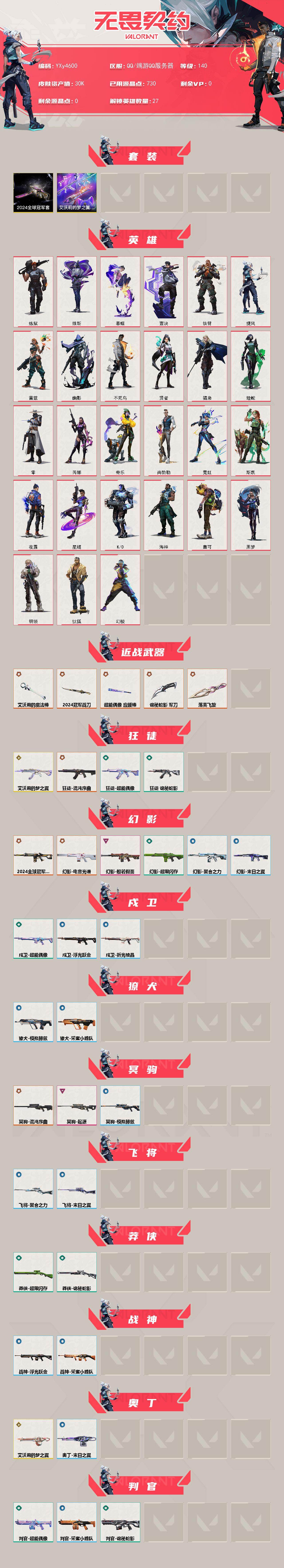【3w库存24冠军套.猫猫全套.落英飞旋.混沌.光谱.恶鬼.起源狙】yxy4600【可二次】【因赛季更新游戏段付以上号为准!】 【套装】:2024全球冠军赛套装,艾沃莉的梦之翼套装 【英雄】:幻棱,炼狱,维斯,暮蝶,钛狐,壹决,铁臂,捷风,雷兹,幽影,不死鸟,贤者,猎枭,蝰蛇,零,芮娜,奇乐,尚勃勒,霓虹,斯凯,夜露,星礈,k/o,海神,盖可,黑梦,钢锁 【近战武器】:近战武器-2024全球冠军赛 战刀,近战武器-落英飞旋,近战武器-艾沃莉的魔法棒,近战武器-超能偶像 应援棒,近战武器-诡秘蛇影 军刀 【狂徒】:狂徒-艾沃莉的梦之翼,狂徒-混沌序曲,狂徒-超能偶像,狂徒-诡秘蛇影 【幻影】:幻影-2024全球冠军赛,幻影-电音光谱,幻影-般若假面,幻影-超限闪存,幻影-聚合之力,幻影-末日之翼,幻影-电音光谱 【戍卫】:戍卫-超能偶像,戍卫-浮光跃金,戍卫-折光棱晶 【獠犬】:獠犬-采蜜小蜂队,獠犬-模拟赫兹 【冥驹】:冥驹-混沌序曲,冥驹-起源,冥驹-模拟赫兹 【飞将】:飞将-聚合之力,飞将-末日之翼 【莽侠】:莽侠-超限闪存,莽侠-诡秘蛇影 【战神】:战神-采蜜小蜂队,战神-浮光跃金 【奥丁】:奥丁-艾沃莉的梦之翼,奥丁-末日之翼 【判官】:判官-超能偶像,判官-诡秘蛇影,判官-采蜜小蜂队 【雄鹿】:雄鹿-模拟赫兹 【骇灵】:骇灵-艾沃莉的梦之翼,骇灵-浮光跃金 【蜂刺】:蜂刺-超限闪存,蜂刺-聚合之力,蜂刺-折光棱晶 【标配】:标配-超能偶像,标配-浮光跃金,标配-折光棱晶 【正义】:正义-奇点,正义-西部未来,正义-纳米打击 【鬼魅】:鬼魅-艾沃莉的梦之翼,鬼魅-流星兵团,鬼魅-诡秘蛇影,鬼魅-采蜜小蜂队,鬼魅-模拟赫兹,鬼魅-星云暗涌 【狂怒】:狂怒-聚合之力 【短炮】:短炮-末日之翼 【卡面】:进入射程 卡面,《双城之战》拥抱 卡面,精灵大战 卡面,欢迎来到底城 卡面,南瓜盛典 卡面,vct cn首冠 卡面,唱片的故事 卡面,钢弓与箭弦 卡面,排除故障 卡面,战术桌游 卡面,悠享食光 卡面,修车达人 卡面,热舞环节 卡面,模拟赫兹 卡面,浮光跃金 卡面,超限闪存 卡面,维斯工牌 卡面,正义的化身 卡面,终章:生意人麦宝 卡面,铁之华 卡面,2024全球冠军赛 卡面,失而复得 卡面,时间到 卡面,最高舞台 卡面,复活专家 卡面,归乡 // 蝰蛇 卡面,超能偶像 卡面,生意人麦宝 卡面,音熊登场 卡面,先瓦为敬 银色 卡面,树懒大作战 卡面,声感陷阱设计图 卡面,钢锁工牌 卡面,战术小伙伴的夏日 卡面,采蜜小蜂队 卡面,聚合之力 卡面,梦幻奶茶 卡面,趁热吃 卡面,源能反应 卡面,零点嗅探设计图 卡面,无畏契约go!第一卷:芮娜 卡面,无畏契约go!第一卷:零 卡面,《双城之战》金克丝 卡面,蝰蛇vs幽影 卡面,代号红色 卡面,新兵报到 卡面,v契约 卡面,无畏契约 卡面 【喷漆】:嗨宝南瓜灯 喷漆,嘭! 喷漆,都算到了 喷漆,控场勿近 喷漆,皮蛋呼呼 喷漆,像素星礈 喷漆,图谋不轨的零 喷漆,小丑猫 喷漆,模拟赫兹 喷漆,高丽风情小熊 喷漆,蹲到一个 喷漆,全力集中 喷漆,超限闪存 喷漆,rua一下 喷漆,熊抱 喷漆,蛋糕还是爆能器? 喷漆,高丽风情小虎 喷漆,记在小本本 喷漆,防弹企鹅 喷漆,高丽风情小蛙 喷漆,2024全球冠军赛 喷漆,又被闪了 喷漆,终极羞辱 喷漆,超级粉丝 喷漆,黯兽卖萌 喷漆,捷风差距 喷漆,惊声尖叫 喷漆,水晶球 喷漆,2021冠军巡回赛花火 喷漆,五人成星 喷漆,超能偶像 喷漆,放我出去 喷漆,战术熊的巴拉莱卡琴 喷漆,掩护我 喷漆,大佬发呛 喷漆,边缘试探 喷漆,拼一呛 喷漆,聚合之力 喷漆,采蜜小蜂队 喷漆,梦幻小队 喷漆,五个全都齐了 喷漆,开心到爆炸 喷漆,我觉得不行 喷漆,我的刀呢? 喷漆,霓光四射 喷漆,双人比心 喷漆,买装还是存钱 喷漆,胜利属于无畏契约 喷漆,glhf 喷漆,无畏契约 喷漆 【挂饰】:v25第三幕:超凡 挂饰,悠闲鸡块 挂饰,伞绳 挂饰,《双城之战》小蛋糕 挂饰,第九季//第三幕 纪念币 挂饰,拳击战术熊 挂饰,工具腰带 挂饰,暗藏猫腻 挂饰,高丽风情 挂饰,熔岩灯 挂饰,超限闪存 挂饰,瞬云履 挂饰,迷你k/o 挂饰,模拟赫兹 挂饰,第九季//第二幕 纪念币 挂饰,薰衣草之心 挂饰,终章:这瓜保熟 挂饰,2024全球冠军赛 挂饰,炼狱雪糕 挂饰,糖葫芦 挂饰,袖珍捷风 挂饰,冲上云霄 挂饰,超能偶像 挂饰,丢麦 挂饰,迷你浓缩 挂饰,尤克里里 挂饰,这瓜保熟 挂饰,z世代特饮 挂饰,动力机箱 挂饰,采蜜小蜂队 挂饰,第九季//第一幕 纪念币 挂饰,聚合之力 挂饰,终章:迷你机甲 挂饰,战术河童 挂饰,荧光棒 挂饰,第八季//第三幕 纪念币 挂饰,天外飞客 挂饰,《双城之战》魄罗 挂饰,无畏契约 纪念币 挂饰