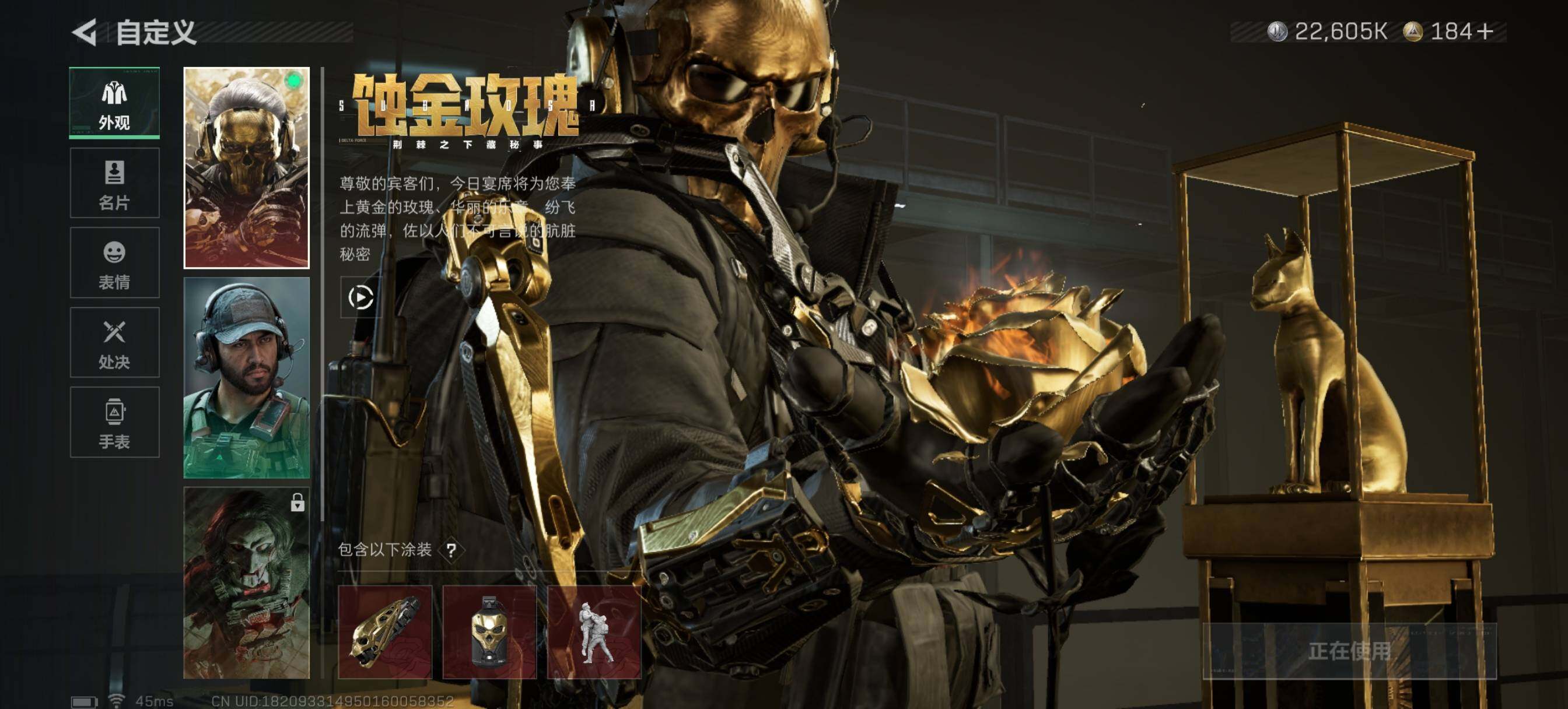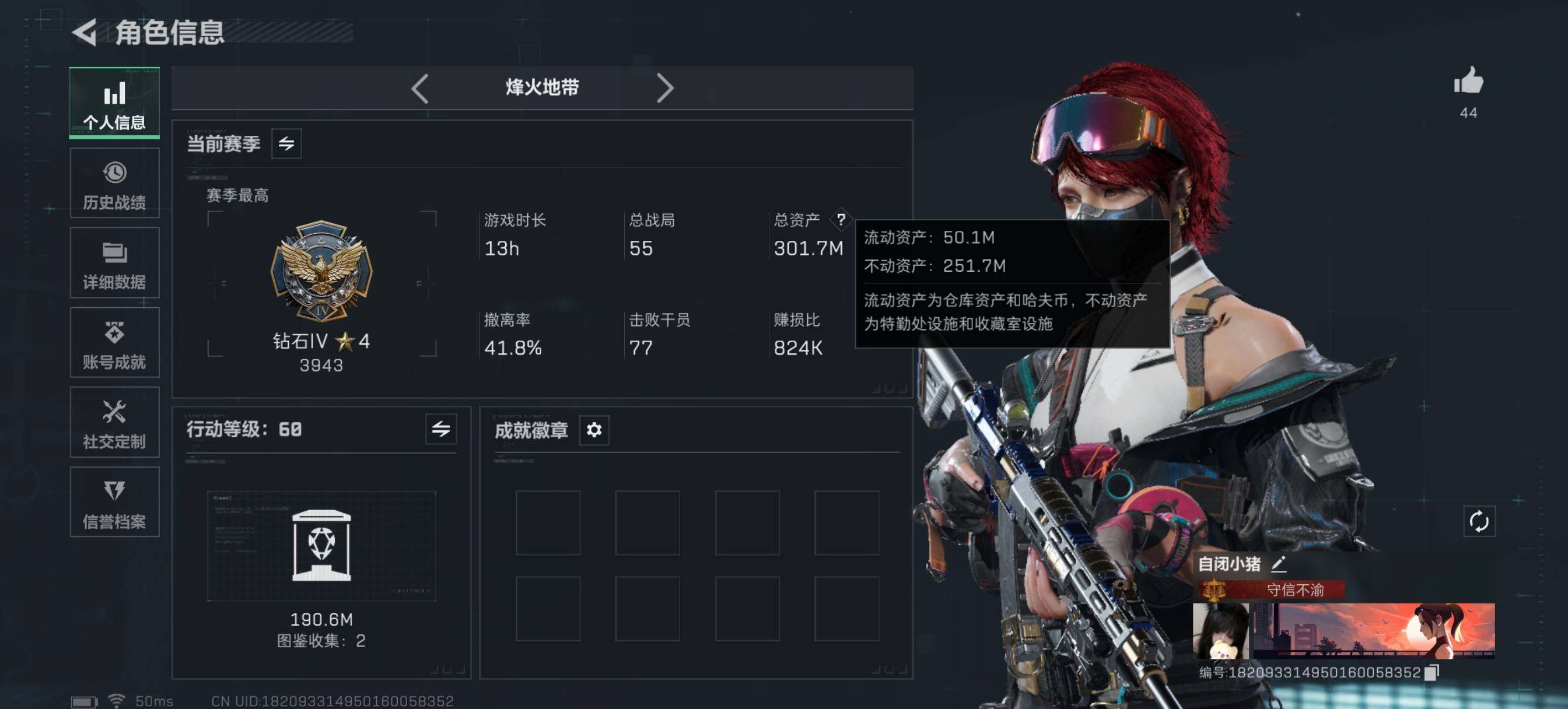 【自带包赔,找回全额赔】此号为精品三角洲、无畏连体号。 【套装】:艾沃莉的梦之翼套装,光荣异象套装,创·纪元套装,般若假面//2.0套装,掠影套装 【英雄】:幻棱,炼狱,维斯,暮蝶,钛狐,壹决,铁臂,捷风,雷兹,幽影,不死鸟,贤者,猎枭,蝰蛇,零,芮娜,奇乐,尚勃勒,霓虹,斯凯,夜露,星礈,k/o,海神,盖可,黑梦,钢锁 【近战武器】:近战武器-光荣异象 歧途,近战武器-紫金爪刀,近战武器-镭