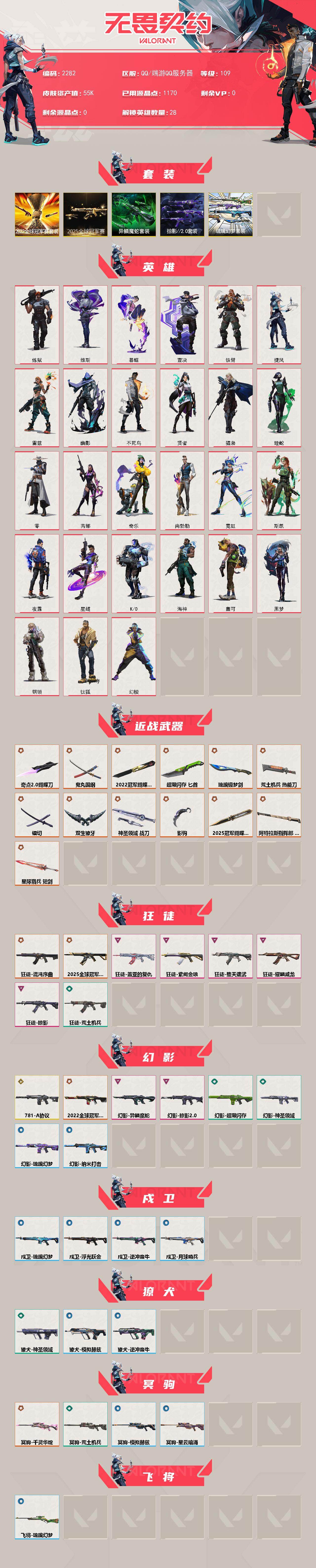 [16182462]【套装】:2025全球冠军赛套装,2022全球冠军赛套装,异鳞魔蛇套装,掠影//2.0套装,琉璃幻梦套装 【英雄】:幻棱,炼狱,维斯,暮蝶,钛狐,壹决,铁臂,捷风,雷兹,幽影,不死鸟,贤者,猎枭,蝰蛇,零,芮娜,奇乐,尚勃勒,霓虹,斯凯,夜露,星礈,k/o,海神,盖可,黑梦,钢锁 【近战武器】:近战武器-2025全球冠军赛 蝴蝶刀,近战武器-2022全球冠军赛 蝴蝶刀,近战武器-影钩,近战武器-奇点//2.0 蝴蝶刀,近战武器-镭切,近战武器-鬼丸国纲,近战武器-双生獠牙,近战武器-超限闪存 匕首,近战武器-荒土机兵 热能刀,近战武器-琉璃锻梦剑,近战武器-神圣领域 战刀,近战武器-阿特拉斯指挥部 甩棍,近战武器-星际猎兵 短剑 【狂徒】:狂徒-2025全球冠军赛,狂徒-混沌序曲,狂徒-堕天遗武,狂徒-掠影,狂徒-盖亚的复仇,狂徒-耀鳞威龙,狂徒-紫阙金琅,狂徒-荒土机兵 【幻影】:幻影-781-a协议,幻影-2022全球冠军赛,幻影-异鳞魔蛇,幻影-掠影//2.0,幻影-超限闪存,幻影-神圣领域,幻影-琉璃幻梦,幻影-纳米打击 【戍卫】:戍卫-浮光跃金,戍卫-琉璃幻梦,戍卫-逆冲蛮牛,戍卫-月球哨兵 【獠犬】:獠犬-神圣领域,獠犬-模拟赫兹,獠犬-逆冲蛮牛 【冥驹】:冥驹-千灵华绽,冥驹-荒土机兵,冥驹-模拟赫兹,冥驹-星云暗涌 【飞将】:飞将-琉璃幻梦 【莽侠】:莽侠-超限闪存,莽侠-月球哨兵 【战神】:战神-神圣领域,战神-浮光跃金 【奥丁】:奥丁-掠影//2.0,奥丁-纳米打击 【判官】:判官-纳米打击x 【雄鹿】:雄鹿-模拟赫兹,雄鹿-逆冲蛮牛,雄鹿-月球哨兵 【骇灵】:骇灵-异鳞魔蛇,骇灵-掠影//2.0,骇灵-荒土机兵,骇灵-浮光跃金,骇灵-星云暗涌 【蜂刺】:蜂刺-超限闪存,蜂刺-星云暗涌 【标配】:标配-荒土机兵,标配-浮光跃金,标配-琉璃幻梦 【正义】:正义-塑水宗,正义-西部未来,正义-超限闪存,正义-纳米打击,正义-月球哨兵 【鬼魅】:鬼魅-天界神兵,鬼魅-掠影//2.0,鬼魅-诡秘蛇影,鬼魅-模拟赫兹,鬼魅-星云暗涌 【狂怒】:狂怒-神圣领域,狂怒-逆冲蛮牛 【卡面】:终章:激斗汉堡 卡面,进入射程 卡面,分崩离析 卡面,纳米打击 卡面,抑制技术 卡面,激斗汉堡 卡面,瓦娃脸雪糕 p2 卡面,从黄昏到黎明 卡面,荒土机兵 卡面,银弹猎手