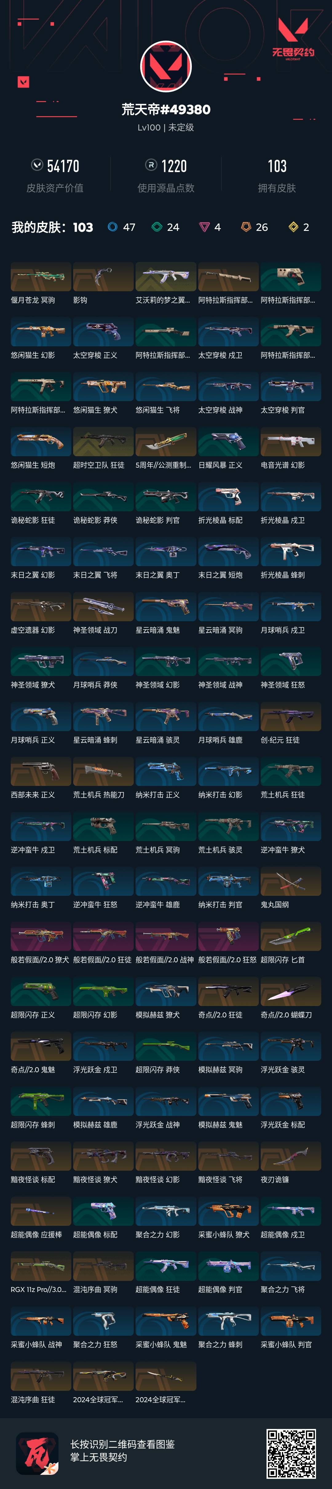 [16187045]q193324 (2024全球冠军赛套装/黯夜怪谈套装/奇点2.0套装/般若假面2.0套装)无畏契约/等级100/段位未定级/英雄28/皮肤103/资产54170/已使用r点1220/剩余r点30/2024全球冠军赛-幻影2024全球冠军赛-战刀,黯夜怪谈-幻影黯夜怪谈-獠犬黯夜怪谈-飞将黯夜怪谈-标配夜刃诡镰,奇点//2.0-狂徒奇点//2.0-鬼魅奇点//2.0-蝴蝶刀,般若假面//2.0-狂徒般若假面//2.0-獠犬般若假面//2.0-战神般若假面//2.0-狂怒鬼丸国纲,阿特拉斯指挥部-甩棍,5周年//公测重制版-苍龙之刃,神圣领域-战刀,荒土机兵-热能刀,超限闪存-匕首,超能偶像-应援棒,影钩,电音光谱-幻影,虚空遗器-幻影,创·纪元-狂徒,混沌序曲-狂徒,超时空卫队-狂徒,艾沃莉的梦之翼-狂徒,混沌序曲-冥驹,rgx-11z-pro//3.0-莽侠,偃月苍龙-冥驹,西部未来-正义