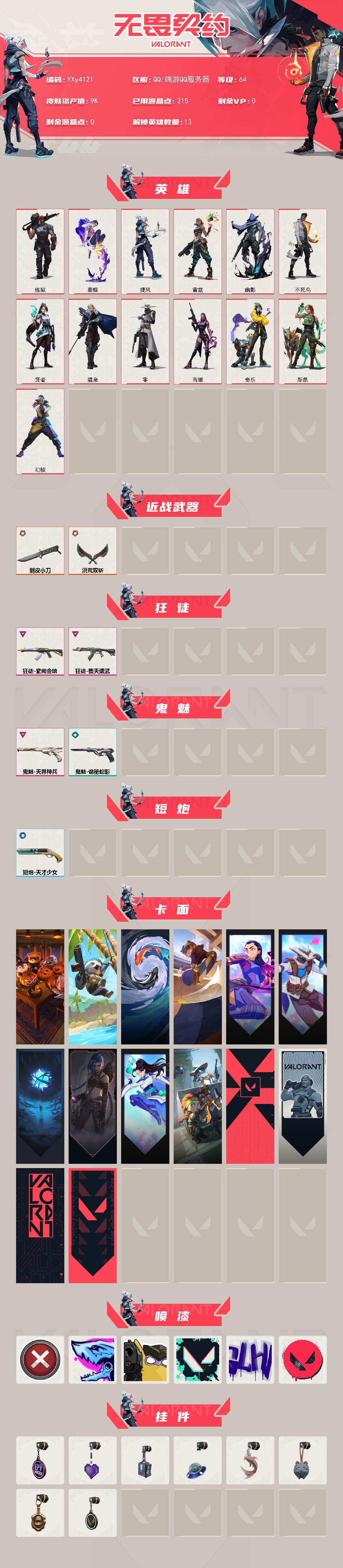 【流脓双刀.剥皮小刀.紫金.弃王.天界鬼魅】y4121 【无二次】【因赛季更新游戏段付以上号为准!】 【英雄】:幻棱,炼狱,暮蝶,捷风,雷兹,幽影,不死鸟,贤者,猎枭,零,芮娜,奇乐,斯凯 【近战武器】:近战武器-剥皮小刀,近战武器-洪荒双斩 【狂徒】:狂徒-堕天遗武,狂徒-紫阙金琅 【鬼魅】:鬼魅-天界神兵,鬼魅-诡秘蛇影 【短炮】:短炮-天才少女 【卡面】:南瓜盛典 卡面,树懒大作战