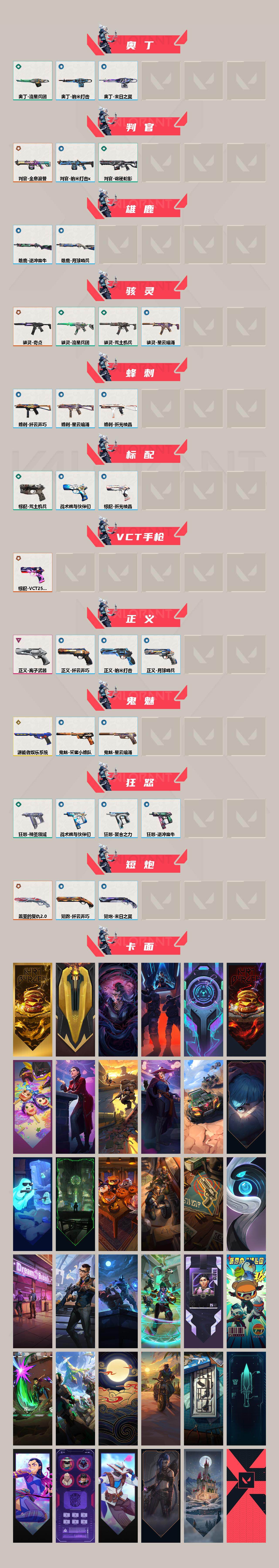 【1408】xw33814 【套装】:2025全球冠军赛套装 【英雄】:幻棱,炼狱,维斯,暮蝶,钛狐,壹决,铁臂,捷风,雷兹,幽影,不死鸟,贤者,猎枭,蝰蛇,零,芮娜,奇乐,尚勃勒,霓虹,斯凯,夜露,星礈,k/o,海神,盖可,黑梦,钢锁 【近战武器】:近战武器-2025全球冠军赛 蝴蝶刀,近战武器-无畏契约go!第三卷 匕首,近战武器-紫金爪刀,近战武器-rgx 11z pro//3.0 爪刀,近战武器-黑波之刃,近战武器-威龙之刃,近战武器-澄湖潋滟,近战武器-荒土机兵 热能刀,近战武器-机动狂飙 战刀,近战武器-神圣领域 战刀,近战武器-星际猎兵 短剑 【狂徒】:狂徒-2025全球冠军赛,狂徒-混沌序曲,狂徒-全息波普//2.0,狂徒-双城之战,狂徒-塑水宗,狂徒-偃月苍龙,狂徒-rgx 11z pro,狂徒-起源,狂徒-荒土机兵,狂徒-流星兵团,狂徒-诡秘蛇影 【幻影】:幻影-千灵华绽,幻影-西部未来,幻影-神圣领域,幻影-纳米打击,幻影-末日之翼,幻影-西部未来 【戍卫】:戍卫-天界神兵,戍卫-逆冲蛮牛,戍卫-战术熊与伙伴们,戍卫-月球哨兵,戍卫-折光棱晶 【獠犬】:獠犬-般若假面//2.0,獠犬-神圣领域,獠犬-逆冲蛮牛 【冥驹】:冥驹-混沌序曲,冥驹-堕天遗武,冥驹-荒土机兵,冥驹-星云暗涌 【飞将】:飞将-西部未来,飞将-战术熊与伙伴们,飞将-末日之翼 【莽侠】:莽侠-无人之境,莽侠-诡秘蛇影,莽侠-纤云弄巧,莽侠-月球哨兵 【战神】:战神-神圣领域 【奥丁】:奥丁-流星兵团,奥丁-纳米打击,奥丁-末日之翼 【判官】:判官-全息波普,判官-诡秘蛇影,判官-纳米打击x 【雄鹿】:雄鹿-逆冲蛮牛,雄鹿-月球哨兵 【骇灵】:骇灵-奇点,骇灵-荒土机兵,骇灵-流星兵团,骇灵-星云暗涌 【蜂刺】:蜂刺-纤云弄巧,蜂刺-星云暗涌,蜂刺-折光棱晶 【标配】:标配-荒土机兵,标配-战术熊与伙伴们,标配-折光棱晶 【vct手呛】:标配-vct25 x prx 【正义】:正义-离子武器,正义-纳米打击,正义-纤云弄巧,正义-月球哨兵 【鬼魅】:鬼魅-源能者娱乐系统,鬼魅-采蜜小蜂队,鬼魅-星云暗涌 【狂怒】:狂怒-神圣领域,狂怒-聚合之力,狂怒-逆冲蛮牛,狂怒-战术熊与伙伴们 【短炮】:短炮-盖亚的复仇//2.0,短炮-纤云弄巧,短炮-末日之翼 【卡面】:终章:激斗汉堡 卡面,进入射程 卡面,分崩离析 卡面,纳米打击 卡面,抑制技术 卡面,激斗汉堡 卡面,瓦娃脸雪糕 p2 卡面,从黄昏到黎明 卡面,荒土机兵 卡面,银弹猎手 卡面,逆冲蛮牛 卡面,《双城之战》拥抱 卡面,精灵大战 卡面,欢迎来到底城 卡面,南瓜盛典 卡面,修车达人 卡面,正义的化身 卡面,聚合之力 卡面,梦幻奶茶 卡面,西装暴徒 卡面,失控边缘 卡面,哨卫者之领域 卡面,暮蝶工牌 卡面,战术熊与伙伴们 卡面,源能反应 卡面,流星兵团 卡面,纤云弄巧 卡面,暂别喧嚣 卡面,打造专属狂徒 卡面,零点嗅探设计图 卡面,无畏契约go!第一卷:芮娜 卡面,清除名单 卡面,无畏契约go!第一卷:零 卡面,《双城之战》金克丝 卡面,胡桃狂想 卡面,代号红色 卡面,新兵报到 卡面,v契约 卡面,无畏契约 卡面 【喷漆】:小小心意 喷漆,战“素”兔 喷漆,宇宙的指引 喷漆,请求重启 喷漆,逆冲蛮牛 喷漆,纳米打击 喷漆,鼻尖上的蝴蝶 喷漆,简笔画黯兽 喷漆,独守蝰腹 喷漆,他们将落荒而逃 喷漆,通缉:战术企鹅 喷漆,荒土机兵 喷漆,别挡我吃球! 喷漆,嗨宝南瓜灯 喷漆,嘭! 喷漆,都算到了 喷漆,控场勿近 喷漆,熊抱 喷漆,五个全都齐了 喷漆,加油!加油! 喷漆,开心到爆炸 喷漆,皮蛋萌舞 喷漆,我觉得不行 喷漆,头号粉丝 喷漆,吸一口快乐 喷漆,永远的答案 喷漆,再来一次? 喷漆,别挡我的路! 喷漆,我的刀呢? 喷漆,当然可以 喷漆,流星兵团 喷漆,战术熊与伙伴们 喷漆,禁止喷漆 喷漆,纤云弄巧 喷漆,新潮流 喷漆,买装还是存钱 喷漆,松叶 喷漆,胜利属于无畏契约 喷漆,glhf 喷漆,无畏契约 喷漆 【挂饰】:终章:猫猫木乃伊 挂饰,荒土机兵 挂饰,悠闲鸡块 挂饰,猫猫木乃伊 挂饰,水壶 挂饰,纳米打击 挂饰,逆冲蛮牛 挂饰,可爱糖糖 挂饰,伞绳 挂饰,《双城之战》小蛋糕 挂饰,第九季//第三幕 纪念币 挂饰,熔岩灯 挂饰,第九季//第二幕 纪念币 挂饰,聚合之力 挂饰,第八季:白银 挂饰,犯困的布鲁诺 挂饰,战术河童 挂饰,招财猫熊 挂饰,迷你机甲 挂饰,荧光棒 挂饰,章鱼烧先生 挂饰,流星兵团 挂饰,云开见日 挂饰,第八季//第三幕 纪念币 挂饰,第八季//第二幕 纪念币 挂饰 ,天外飞客 挂饰,红鳞松叶 挂饰,无畏契约 纪念币 挂饰