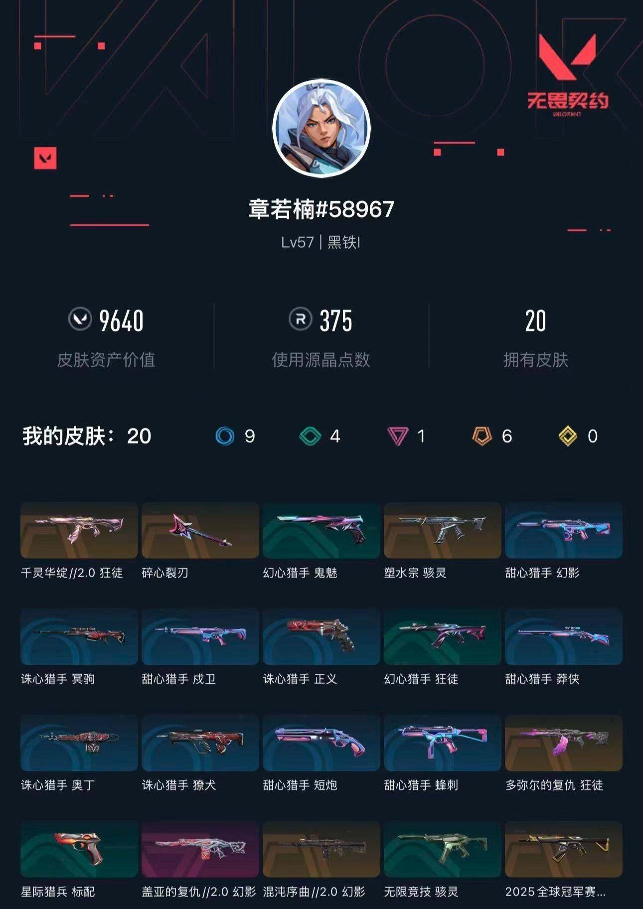 [16219235]【英雄】:幻棱,炼狱,暮蝶,壹决,铁臂,捷风,雷兹,幽影,不死鸟,贤者,猎枭,蝰蛇,零,芮娜,尚勃勒,霓虹,夜露,k/o,海神,盖可,钢锁 【狂徒】:狂徒-2025全球冠军赛,狂徒-多弥尔的复仇,狂徒-千灵华绽//2.0 【幻影】:幻影-混沌序曲//2.0,幻影-盖亚的复仇//2.0 【骇灵】:骇灵-塑水宗,骇灵-无限竞技 【卡面】:树懒大作战 卡面,红鳞松叶 卡面,clutch 卡面,无畏契约go!第一卷:芮娜 卡面,无畏契约go!第一卷:零 卡面,《双城之战》金克丝 卡面,钢锁vs盖可 卡面,别冒尖 卡面,代号红色 卡面,新兵报到 卡面,v契约 卡面,无畏契约 卡面 【喷漆】:买装还是存钱 喷漆,无畏契约go!第一卷:贤者 喷漆,暴走萝莉 喷漆,胜利属于无畏契约 喷漆,glhf 喷漆,无畏契约 喷漆 【挂饰】:无畏契约go!第一卷 零 挂饰,薰衣草之心 挂饰,动力机箱 挂饰,天外飞客 挂饰,无畏契约 纪念币 挂饰