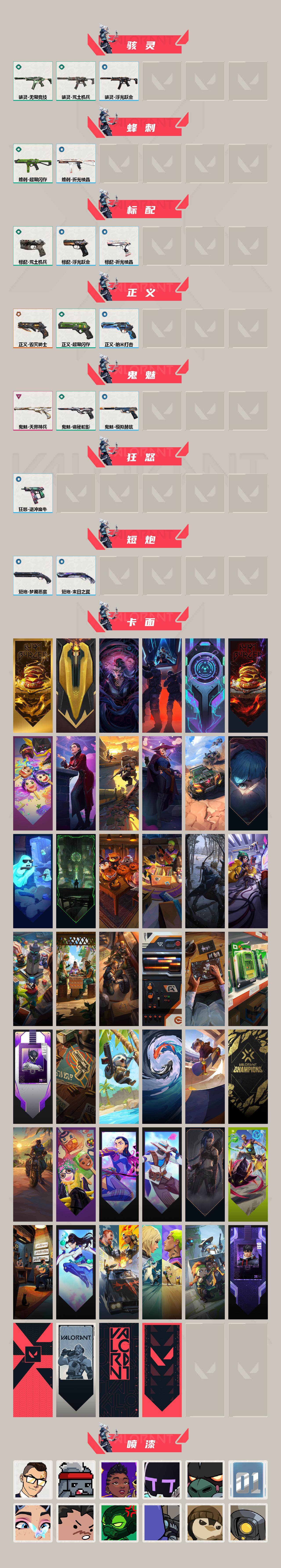【英雄】:幻棱,炼狱,维斯,暮蝶,钛狐,壹决,铁臂,捷风,雷兹,幽影,不死鸟,贤者,猎枭,蝰蛇,零,芮娜,奇乐,尚勃勒,霓虹,斯凯,夜露,星礈,k/o,海神,盖可,黑梦,钢锁 【近战武器】:近战武器-超限闪存 匕首,近战武器-荒土机兵 热能刀,近战武器-神罚 军刀,近战武器-诡秘蛇影 军刀,近战武器-日耀风暴 遗器 【狂徒】:狂徒-2025全球冠军赛,狂徒-盖亚的复仇,狂徒-荒土机兵,狂徒-诡