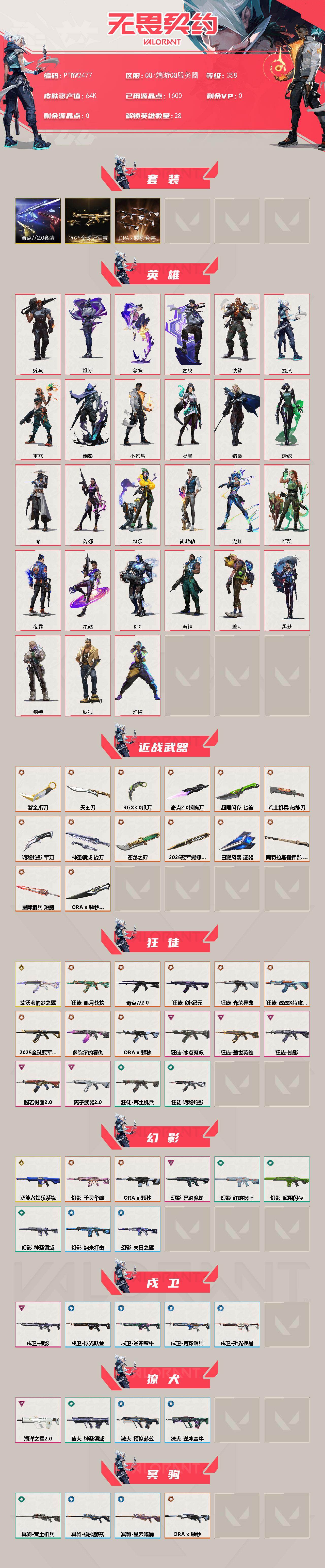 【套装】:2025全球冠军赛套装,a x 颗秒套装,奇点//2.0套装 【英雄】:幻棱,炼狱,维斯,暮蝶,钛狐,壹决,铁臂,捷风,雷兹,幽影,不死鸟,贤者,猎枭,蝰蛇,零,芮娜,奇乐,尚勃勒,霓虹,斯凯,夜露,星礈,k/o,海神,盖可,黑梦,钢锁 【近战武器】:近战武器-2025全球冠军赛 蝴蝶刀,近战武器-a x 颗秒 军刀,近战武器-5周年//公测重制版 苍龙之刃,近战武器-奇点/