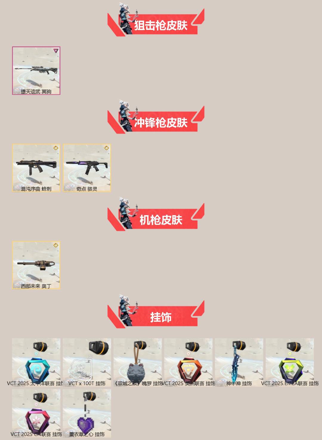 [16296951]13橙皮 5紫皮 56皮肤 28英雄 94卡面 800已用源晶 未定级段位 【套装】vctcn2025套装vct 2025赛季礼包 【近战武器皮肤】vct 2025 爪刀神圣领域 战刀荒土机兵热能刀诡秘蛇影 【佩呛皮肤】标配-vct25x100t鬼魅-噬影者正义-日冕雄师短炮-光明哨兵2.0 【冲锋呛皮肤】蜂刺-混沌序曲骇灵-奇点 【步呛皮肤】幻影-黯夜怪谈狂徒-离子武器2.02025全球冠军赛 狂徒狂徒-日冕雄师幻影-洪荒怒焰戍卫-紫阙金琅 【狙击呛皮肤】冥驹-堕天遗武 【机呛皮肤】奥丁-西部未来 【挂饰】vctx100t挂饰薰衣草之心挂饰vct2025太平洋联赛挂饰神中神挂饰vct2025美洲联赛挂饰双城之战魄罗挂饰vct2025emea联赛挂饰vct2025cn联赛挂饰