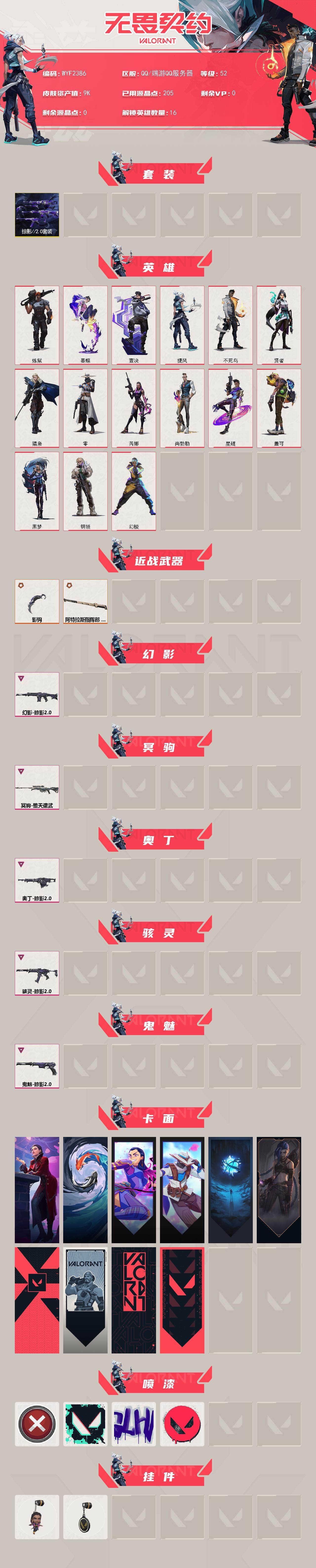 【wyf2386】终极2/卓越5/皮肤20/等级52/段位:未定级/掠影//2.0套装/幻棱/炼狱/暮蝶/壹决/捷风/不死鸟/贤者/猎枭/零/芮娜/尚勃勒/星礈/盖可/黑梦/钢锁/近战武器-影钩/近战武器-阿特拉斯指挥部 甩棍/幻影-掠影//2.0/冥驹-堕天遗武/奥丁-掠影//2.0/骇灵-掠影//2.0/鬼魅-掠影//2.0/从黄昏到黎明 卡面/红鳞松叶 卡面/无畏契约go!第一卷