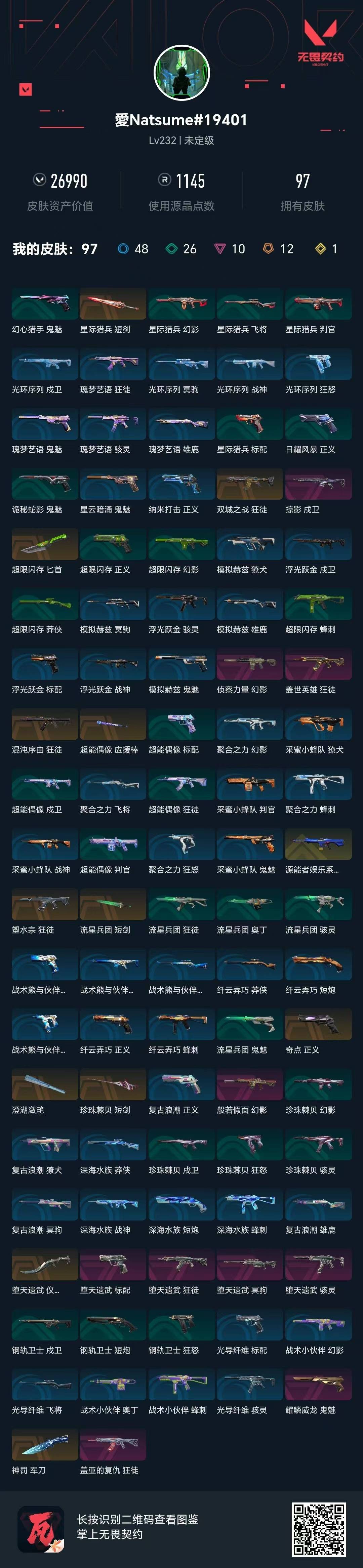 [16303705]12橙皮 1金皮 10紫皮 97皮肤 28英雄 135卡面 1145已用源晶 未定级段位 【套装】堕天遗武套装 【近战武器皮肤】匕首-超限闪存短剑-流星兵团星际猎兵 短剑堕天遗武 仪式匕首短剑-珍珠棘贝澄湖潋滟超能偶像 应援棒军刀-神罚 【佩呛皮肤】正义-奇点鬼魅-耀鳞威龙标配-堕天遗武 【冲锋呛皮肤】骇灵-堕天遗武 【步呛皮肤】狂徒-双城之战戍卫-掠影狂徒-混沌序曲狂徒-盖亚的复仇狂徒-塑水宗狂徒-盖世英雄狂徒-堕天遗武幻影-侦察力量幻影-源能者娱乐系统幻影-般若假面 【狙击呛皮肤】冥驹-堕天遗武 【挂饰】袖珍捷风挂饰超能偶像挂饰神中神挂饰永结同心挂饰传世莲华挂饰v26第一幕纪念币 挂饰双城之战魄罗挂饰糖葫芦挂饰云开见日挂饰双城之战小蛋糕挂饰终章ko小金人挂饰飞刀挂饰迷你机甲挂饰
