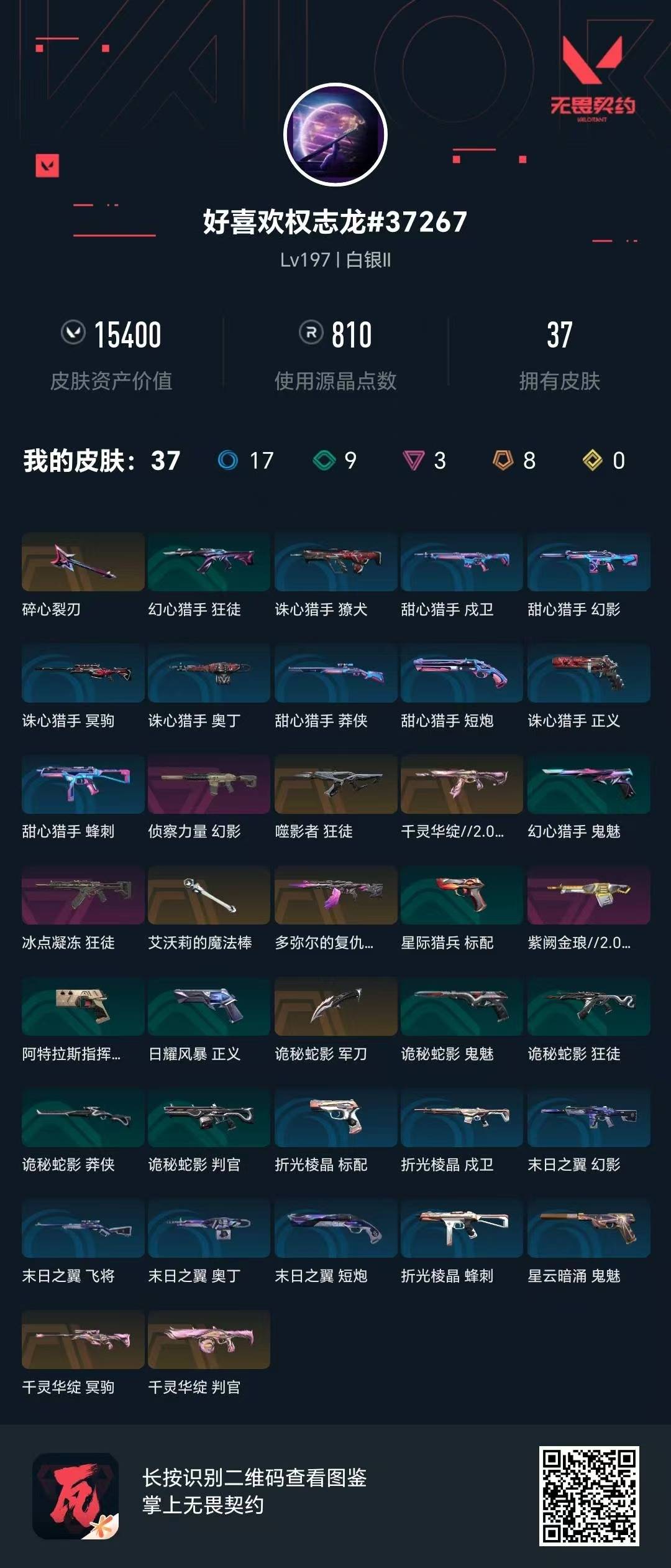 [16306104]8橙皮 3紫皮 37皮肤 28英雄 90卡面 810已用源晶 白银段位 【近战武器皮肤】诡秘蛇影碎心裂刃艾沃莉的魔法棒 【霰弹呛皮肤】判官-千灵华绽 【步呛皮肤】狂徒-噬影者狂徒-千灵华绽//2.0多弥尔的复仇 狂徒狂徒-冰点凝冻幻影-侦察力量 【狙击呛皮肤】冥驹-千灵华绽 【机呛皮肤】奥丁-紫阙金琅2.0 【挂饰】薰衣草之心挂饰神中神挂饰v26第一幕纪念币 挂饰双城之战魄罗挂饰