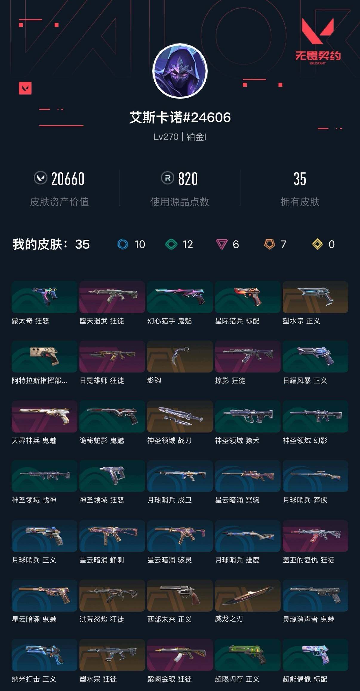[16319402]【英雄】:幻棱,炼狱,维斯,暮蝶,钛狐,壹决,铁臂,捷风,雷兹,幽影,不死鸟,贤者,猎枭,蝰蛇,零,芮娜,奇乐,尚勃勒,霓虹,斯凯,夜露,星礈,k/o,海神,盖可,黑梦,钢锁 【近战武器】:近战武器-影钩,近战武器-威龙之刃,近战武器-神圣领域 战刀 【狂徒】:狂徒-洪荒怒焰,狂徒-塑水宗,狂徒-堕天遗武,狂徒-掠影,狂徒-盖亚的复仇,狂徒-日冕雄师,狂徒-紫阙金琅 【幻影】:幻影-神圣领域 【戍卫】:戍卫-月球哨兵 【獠犬】:獠犬-神圣领域 【冥驹】:冥驹-星云暗涌 【莽侠】:莽侠-月球哨兵 【战神】:战神-神圣领域 【雄鹿】:雄鹿-月球哨兵 【骇灵】:骇灵-星云暗涌 【蜂刺】:蜂刺-星云暗涌 【标配】:标配-超能偶像 【正义】:正义-塑水宗,正义-西部未来,正义-超限闪存,正义-纳米打击,正义-月球哨兵 【鬼魅】:鬼魅-天界神兵,鬼魅-诡秘蛇影,鬼魅-灵魂消声者,鬼魅-星云暗涌 【狂怒】:狂怒-神圣领域 【卡面】:终章:激斗汉堡 卡面,进入射程 卡面,《双城之战》拥抱 卡面,精灵大战 卡面,欢迎来到底城 卡面,南瓜盛典 卡面,vct cn首冠 卡面,无畏契约:暮蝶 卡面,修车达人 卡面,正义的化身 卡面,终章:生意人麦宝 卡面,铁之华 卡面,时间到 卡面,最高舞台 卡面,声感陷阱设计图 卡面,红鳞松叶 卡面,霓帧牛蛙 卡面,梦幻奶茶 卡面,无畏契约:尚勃勒 卡面,零点嗅探设计图 卡面,沙雕爆能器 卡面,无畏契约go!第一卷:芮娜 卡面,清除名单 卡面,无畏契约go!第一卷:零 卡面,《双城之战》金克丝 卡面,逆向独行 卡面 ,代号红色 卡面,冰淇淋店 卡面,新兵报到 卡面,v契约 卡面,无畏契约 卡面 【喷漆】:嗨宝南瓜灯 喷漆,嘭! 喷漆,都算到了 喷漆,控场勿近 喷漆,伤心心 喷漆,小丑猫 喷漆,熊抱 喷漆,超级粉丝 喷漆,捷风差距 喷漆,惊声尖叫 喷漆,2021冠军巡回赛花火 喷漆,拼一呛 喷漆,致命优雅 喷漆,uwu 喷漆,新潮流 喷漆,双人比心 喷漆,双击点赞 喷漆,买装还是存钱 喷漆,酷熊冲浪 喷漆,无畏契约go!第一卷:零 喷漆,胜利属于无畏契约 喷漆,glhf 喷漆,无畏契约 喷漆 【挂饰】:终章:猫猫木乃伊 挂饰,悠闲鸡块 挂饰,伞绳 挂饰,《双城之战》小蛋糕 挂饰,第九季//第三幕 纪念币 挂饰,工具腰带 挂饰,无畏契约go!第一卷 芮娜