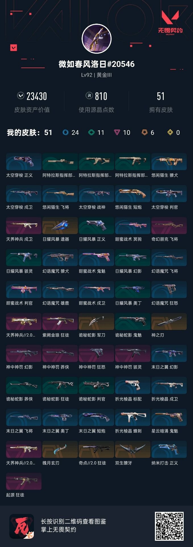 [16343587]6橙皮 10紫皮 51皮肤 26英雄 80卡面 810已用源晶 黄金段位 【套装】神罚套装神中神罚套装 【近战武器皮肤】双生獠牙诡秘蛇影神之刃魄月玄刃 【佩呛皮肤】狂怒-神中神罚 【冲锋呛皮肤】骇灵-神中神罚 【霰弹呛皮肤】判官-天界神兵2.0 【步呛皮肤】幻影-神中神罚狂徒-奇点//2.0狂徒-紫阙金琅狂徒-起源幻影-天界神兵2.0戍卫-天界神兵 【狙击呛皮肤】莽侠-神中神罚飞将-奇幻朋克 【挂饰】永生玫瑰挂饰神中神挂饰神中神罚挂饰双城之战小蛋糕挂饰鱼骨头挂饰