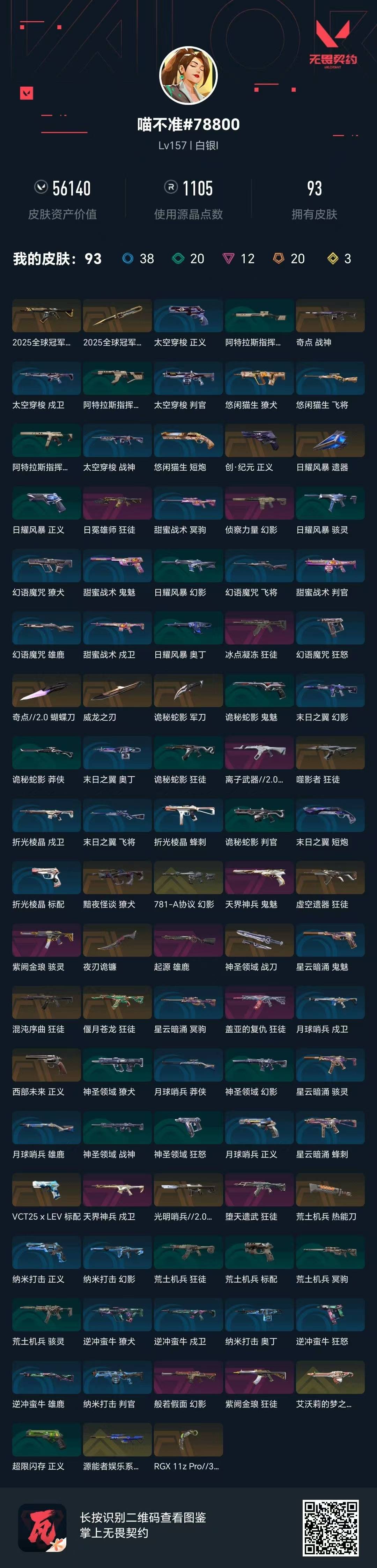 [16344464]20橙皮 3金皮 12紫皮 93皮肤 28英雄 112卡面 1105已用源晶 白银段位 【套装】曲奇套装2025全球冠军赛 【近战武器皮肤】神圣领域 战刀荒土机兵热能刀诡秘蛇影夜刃诡镰蝴蝶刀-奇点//2.02025全球冠军赛 蝴蝶刀威龙之刃爪刀-rgx 11z pro 3.0 【佩呛皮肤】标配-vct25xlev正义-创·纪元正义-西部未来鬼魅-天界神兵 【冲锋呛皮肤】骇灵-紫阙金琅 【霰弹呛皮肤】雄鹿-起源 【步呛皮肤】狂徒-虚空遗器獠犬-黯夜怪谈狂徒-混沌序曲狂徒-噬影者狂徒-离子武器2.02025全球冠军赛 狂徒狂徒-紫阙金琅狂徒-盖亚的复仇狂徒-偃月苍龙狂徒-冰点凝冻狂徒-堕天遗武狂徒-日冕雄师幻影-781-a协议幻影-侦察力量幻影-光明哨兵2.0幻影-般若假面戍卫-天界神兵 【狙击呛皮肤】冥驹-源能者娱乐系统 【机呛皮肤】战神-奇点奥丁-艾沃莉的梦之翼 【挂饰】薰衣草之心挂饰袖珍捷风挂饰神中神挂饰好运喵挂饰打不烂的挂饰永结同心挂饰2025全球冠军赛挂饰双城之战小蛋糕挂饰vctxlev挂饰终章ko小金人挂饰