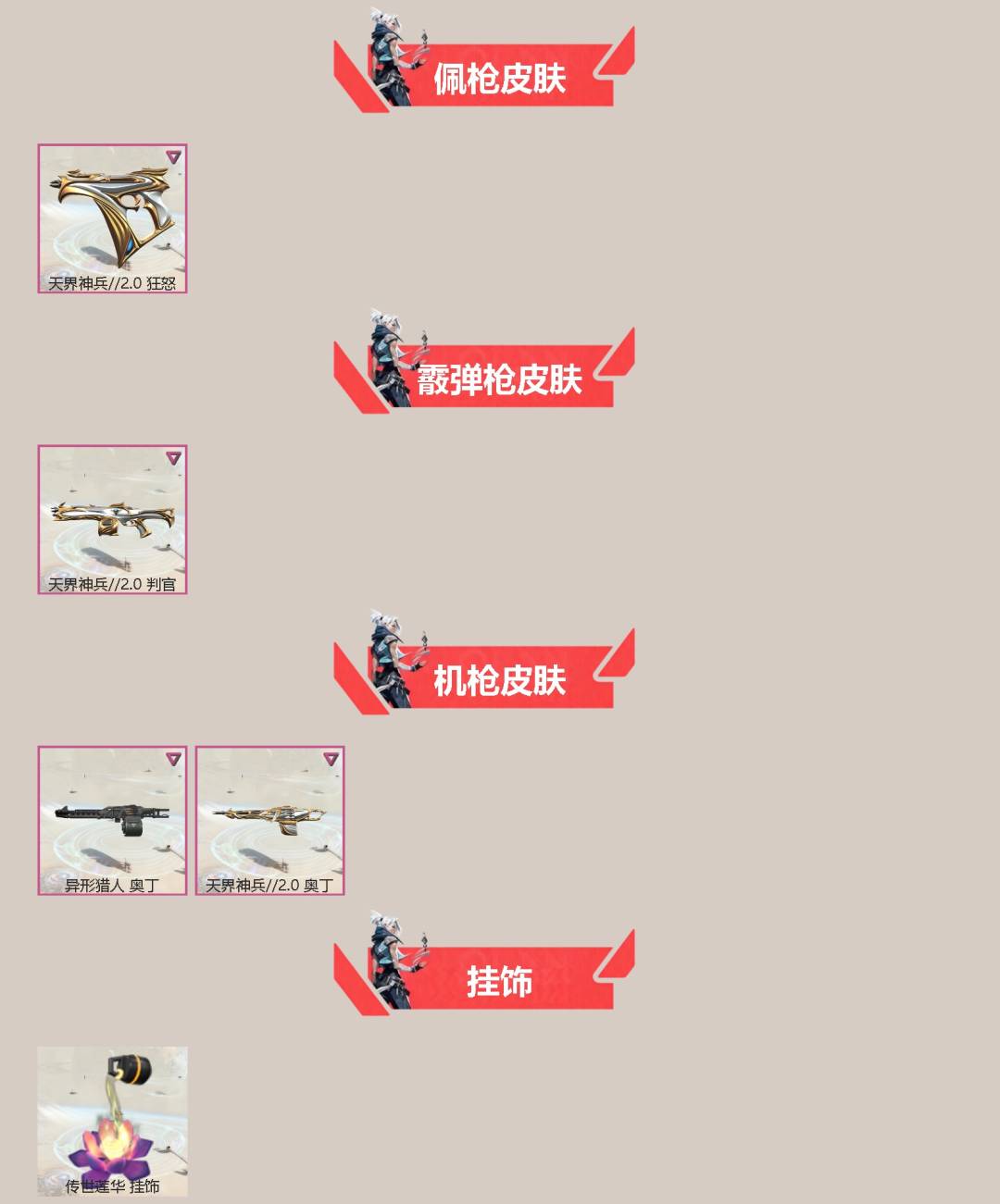 [16346442]1橙皮 7紫皮 30皮肤 15英雄 34卡面 300已用源晶 黄金段位 【套装】天界神兵//2.0套装 【近战武器皮肤】天御刀 【佩呛皮肤】狂怒-天界神兵2.0 【霰弹呛皮肤】判官-天界神兵2.0 【步呛皮肤】狂徒-堕天遗武幻影-盖亚的复仇2.0幻影-天界神兵2.0 【机呛皮肤】奥丁-天界神兵2.0奥丁-异形猎人 【挂饰】传世莲华挂饰
