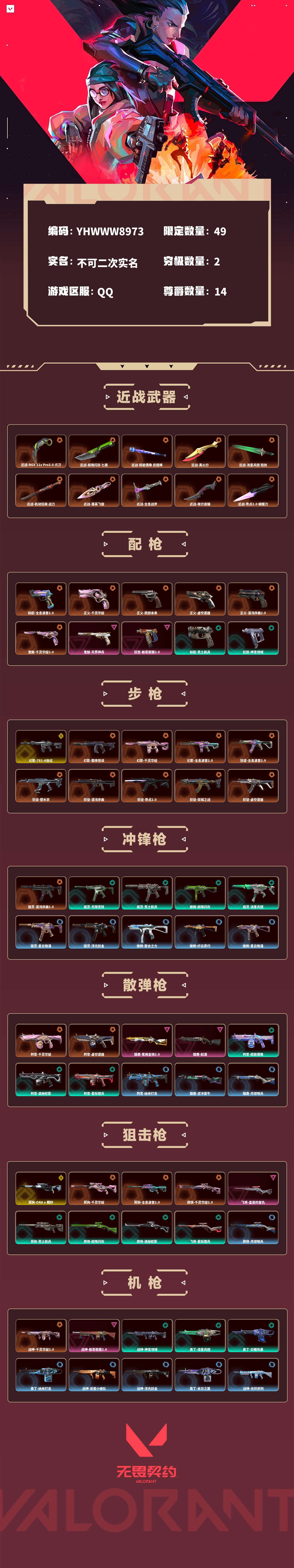 【无畏契约】【yhwww8973】等级:216,已用无畏点108165,已用源晶点1780,金皮:幻影-781-a协议|冥驹-a x 颗秒__橙皮:标配-全息波普2.0|幻影-黯夜怪谈|幻影-千灵华绽|幻影-全息波普2.0|近战-rgx 11z pro3.0 爪刀|近战-超限闪存 匕首|近战-超能偶像 应援棒|近战-离火刃|近战-流星兵团 短剑|近战-机动狂飙 战刀|近战-落英飞旋|近战-全息战斧|近战-夜刃诡镰|狂徒-全息波普2.0|狂徒-塑水宗|狂徒-混沌序曲|冥驹-千灵华绽|判官-千灵华绽|冥驹-全息波普2.0|正义-千灵华绽|狂徒-奇点2.0|近战-奇点2.0 蝴蝶刀|近战-荒土机兵 热能刀|狂徒-双城之战|近战-鬼丸国纲|近战-神圣领域 战刀|正义-西部未来|正义-虚空遗器|判官-虚空遗器|狂徒-虚空遗器|幻影-虚空遗器|近战-源始幻刃|近战-诡秘蛇影 军刀|狂徒-噬影者|狂徒-rgx 11z pro|近战-星际猎兵 短剑|狂徒-2025全球冠军赛|近战-2025全球冠军赛 蝴蝶刀|幻影-混沌序曲2.0|獠犬-混沌序曲2.0|正义-混沌序曲2.0|骇灵-混沌序曲2.0|近战-混沌链枷|近战-流风回雪|莽侠-千灵华绽2.0|鬼魅-千灵华绽2.0|狂徒-千灵华绽2.0|战神-千灵华绽2.0__紫皮:飞将-盖亚的复仇|鬼魅-天界神兵|狂徒-日冕雄师|幻影-侦察力量|狂徒-盖亚的复仇|狂徒-海洋之星|戍卫-天界神兵|狂徒-耀鳞威龙|雄鹿-紫阙金琅2.0|雄鹿-起源|战神-般若假面2.0|獠犬-般若假面2.0|狂徒-般若假面2.0|狂怒-般若假面2.0__段位:未定级__蓝皮:标配-超能冲撞|判官-纳米打击|正义-纳米打击|奥丁-纳米打击|幻影-纳米打击|雄鹿-逆冲蛮牛|狂怒-逆冲蛮牛|戍卫-逆冲蛮牛|獠犬-逆冲蛮牛|鬼魅-星云暗涌|骇灵-星云暗涌|正义-月球哨兵|莽侠-月球哨兵|戍卫-月球哨兵|雄鹿-月球哨兵|鬼魅-采蜜小蜂队|战神-采蜜小蜂队|獠犬-采蜜小蜂队|判官-采蜜小蜂队|骇灵-浮光跃金|标配-浮光跃金|戍卫-浮光跃金|战神-浮光跃金|蜂刺-聚合之力|幻影-聚合之力|狂怒-聚合之力|飞将-聚合之力|鬼魅-模拟赫兹|獠犬-模拟赫兹|冥驹-模拟赫兹|雄鹿-模拟赫兹|莽侠-纤云弄巧|正义-纤云弄巧|短炮-纤云弄巧|蜂刺-纤云弄巧|冥驹-星云暗涌|蜂刺-星云暗涌|飞将-战术熊与伙伴们|狂怒-战术熊与伙伴们|戍卫-战术熊与伙伴们|标配-战术熊与伙伴们|蜂刺-折光棱晶|戍卫-折光棱晶|标配-折光棱晶|飞将-末日之翼|幻影-末日之翼|短炮-末日之翼|奥丁-末日之翼|鬼魅-甜蜜战术|判官-甜蜜战术|戍卫-甜蜜战术|雄鹿-幻语魔咒|獠犬-幻语魔咒|飞将-幻语魔咒|狂怒-幻语魔咒|狂怒-光环序列|戍卫-光环序列|冥驹-光环序列|战神-光环序列|狂徒-瑰梦艺语|鬼魅-瑰梦艺语|骇灵-瑰梦艺语|雄鹿-瑰梦艺语|蜂刺-甜心猎手|短炮-甜心猎手|莽侠-甜心猎手|幻影-甜心猎手|戍卫-甜心猎手|正义-诛心猎手|冥驹-诛心猎手|獠犬-诛心猎手|奥丁-诛心猎手__绿皮:骇灵-无限竞技|狂徒-荒土机兵|标配-荒土机兵|骇灵-荒土机兵|冥驹-荒土机兵|獠犬-神圣领域|狂怒-神圣领域|战神-神圣领域|幻影-神圣领域|戍卫-超能偶像|标配-超能偶像|狂徒-超能偶像|判官-超能偶像|正义-超限闪存|莽侠-超限闪存|幻影-超限闪存|蜂刺-超限闪存|骇灵-流星兵团|鬼魅-流星兵团|狂徒-流星兵团|奥丁-流星兵团|判官-诡秘蛇影|鬼魅-诡秘蛇影|莽侠-诡秘蛇影|狂徒-诡秘蛇影|幻影-日耀风暴|奥丁-日耀风暴|判官-星际猎兵|飞将-星际猎兵|标配-星际猎兵|狂徒-幻心猎手|鬼魅-幻心猎手__英雄:尚勃勒|维斯|黑梦|斯凯|暮蝶|盖可|霓虹|壹决|星礈|k/o|幽影|夜露|钢锁|海神|奇乐|炼狱|铁臂|贤者|猎枭|钛狐|芮娜|零|捷风|蝰蛇|不死鸟|幻棱|雷兹|禁灭