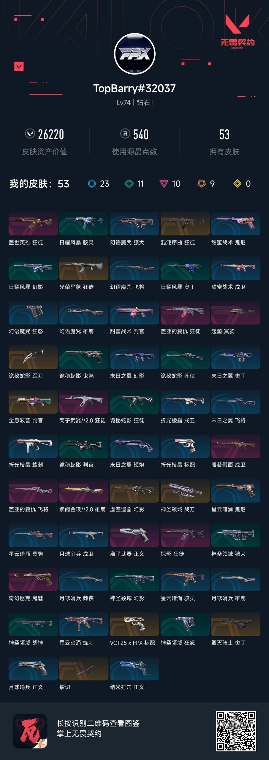 [16175086]9橙皮 10紫皮 53皮肤 25英雄 70卡面 540已用源晶 钻石段位 【近战武器皮肤】神圣领域 战刀镭切诡秘蛇影 【佩呛皮肤】标配-vct25xf正义-离子武器鬼魅-奇幻朋克 【霰弹呛皮肤】判官-全息波普雄鹿-紫阙金琅2.0 【步呛皮肤】狂徒-混沌序曲幻影-