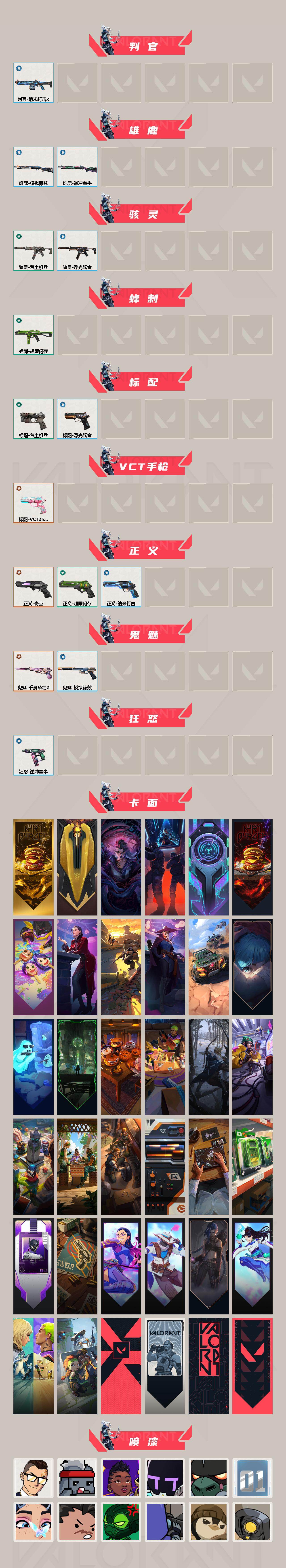 [16351937]【套装】:千灵华绽//2.0套装 【英雄】:幻棱,炼狱,维斯,暮蝶,钛狐,壹决,铁臂,捷风,雷兹,幽影,不死鸟,贤者,猎枭,蝰蛇,零,芮娜,奇乐,尚勃勒,霓虹,斯凯,夜露,星礈,k/o,海神,盖可,黑梦,钢锁 【近战武器】:近战武器-流风回雪,近战武器-威龙之刃,近战武器-鬼丸国纲,近战武器-超限闪存 匕首,近战武器-荒土机兵 热能刀,近战武器-神罚 军刀,近战武器-星际猎兵 短剑 【狂徒】:狂徒-混沌序曲,狂徒-双城之战,狂徒-rgx 11z pro,狂徒-千灵华绽//2.0,狂徒-堕天遗武,狂徒-盖亚的复仇,狂徒-荒土机兵 【幻影】:幻影-洪荒怒焰,幻影-千灵华绽,幻影-a x 颗秒,幻影-超限闪存,幻影-纳米打击 【戍卫】:戍卫-浮光跃金,戍卫-逆冲蛮牛 【獠犬】:獠犬-模拟赫兹,獠犬-逆冲蛮牛 【冥驹】:冥驹-堕天遗武,冥驹-荒土机兵,冥驹-模拟赫兹 【莽侠】:莽侠-千灵华绽//2.0,莽侠-超限闪存 【战神】:战神-千灵华绽//2.0,战神-浮光跃金 【奥丁】:奥丁-纳米打击 【判官】:判官-纳米打击x 【雄鹿】:雄鹿-模拟赫兹,雄鹿-逆冲蛮牛 【骇灵】:骇灵-荒土机兵,骇灵-浮光跃金 【蜂刺】:蜂刺-超限闪存 【标配】:标配-荒土机兵,标配-浮光跃金 【vct手呛】:标配-vct25 x blg 【正义】:正义-奇点,正义-超限闪存,正义-纳米打击 【鬼魅】:鬼魅-千灵华绽//2.0,鬼魅-模拟赫兹 【狂怒】:狂怒-逆冲蛮牛 【卡面】:终章:激斗汉堡 卡面,进入射程 卡面,分崩离析 卡面,纳米打击 卡面,抑制技术 卡面,激斗汉堡 卡面,瓦娃脸雪糕 p2 卡面,从黄昏到黎明 卡面,荒土机兵 卡面,银弹猎手 卡面,逆冲蛮牛 卡面,《双城之战》拥抱 卡面,精灵大战 卡面,欢迎来到底城 卡面,南瓜盛典 卡面,唱片的故事 卡面,钢弓与箭弦 卡面,排除故障 卡面,战术桌游 卡面,悠享食光 卡面,修车达人 卡面,模拟赫兹 卡面,浮光跃金 卡面,超限闪存 卡面,维斯工牌 卡面,正义的化身 卡面,无畏契约go!第一卷:芮娜 卡面,无畏契约go!第一卷:零 卡面,《双城之战》金克丝 卡面,无畏契约go!第一卷:贤者 卡面,钢锁vs盖可 卡面,别冒尖 卡面,代号红色 卡面,新兵报到 卡面,v契约 卡面,无畏契约 卡面 【喷漆】:小小心意 喷漆,战“素”兔 喷漆,宇宙的指