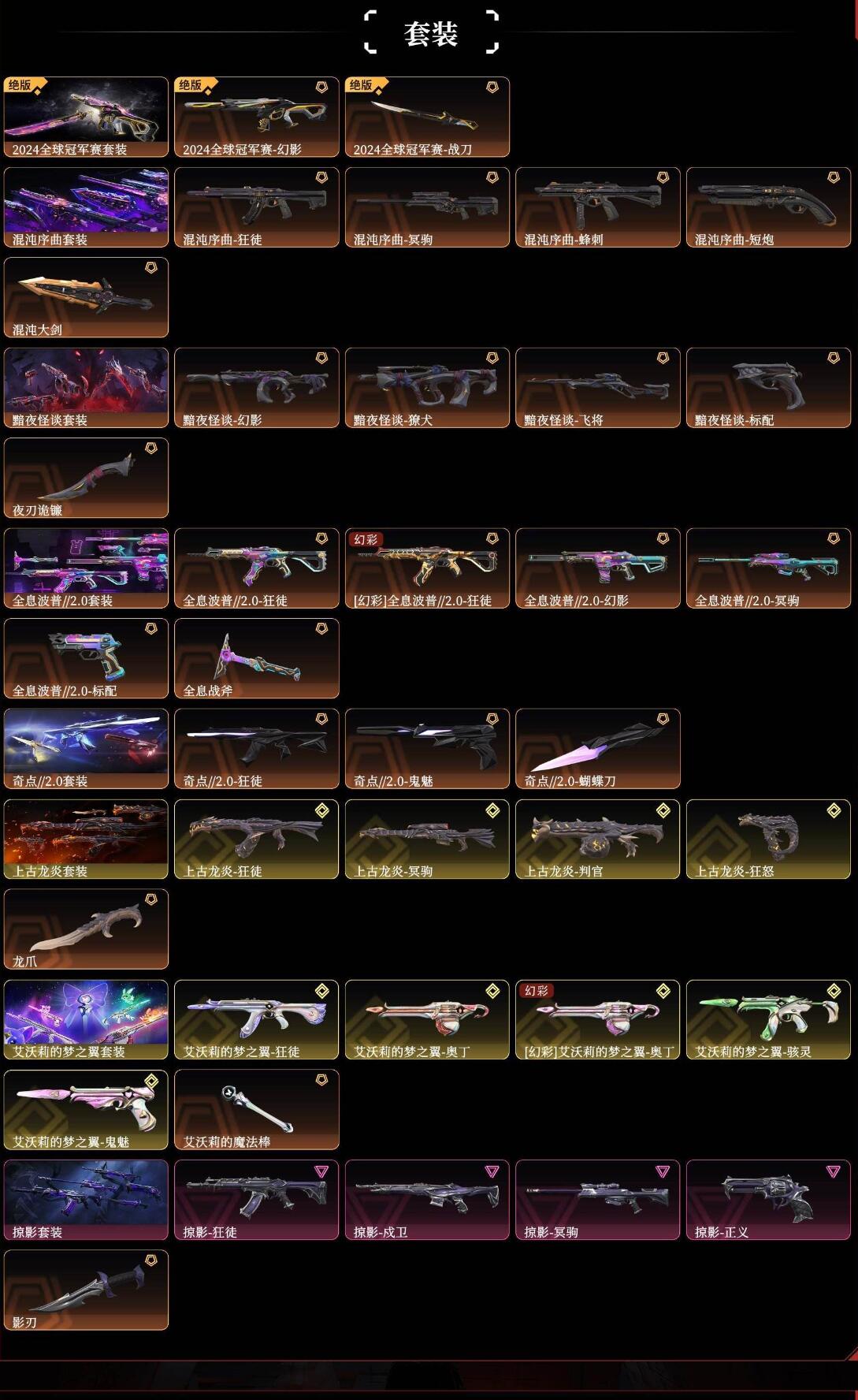 [16363702](2024全球冠军赛套装/艾沃莉的梦之翼套装/掠影套装/上古龙炎套装/混沌序曲套装/黯夜怪谈套装/全息波普2.0套装/奇点2.0套装)q193087 无畏契约/等级210/段位未定级/英雄28/皮肤177/资产120040/已使用r点1755/剩余r点5/2024全球冠军赛-幻影,2024全球冠军赛-战刀,艾沃莉的梦之翼-狂徒,艾沃莉的梦之翼-奥丁,艾沃莉的梦之翼-骇灵,艾沃莉的梦之翼-鬼魅,艾沃莉的魔法棒,上古龙炎-狂徒,上古龙炎-冥驹,上古龙炎-判官,上古龙炎-狂怒,龙爪,混沌序曲-狂徒,混沌序曲-冥驹,混沌序曲-蜂刺,混沌序曲-短炮,混沌大剑,黯夜怪谈-幻影,黯夜怪谈-獠犬,黯夜怪谈-飞将,黯夜怪谈-标配,夜刃诡镰,全息波普//2.0-狂徒,全息波普//2.0-幻影,全息波普//2.0-冥驹,全息波普//2.0-标配,全息战斧,奇点//2.0-狂徒,奇点//2.0-鬼魅,奇点//2.0-蝴蝶刀,掠影-狂徒,掠影-冥驹,掠影-戍卫,掠影-正义,影刃,落英飞旋,堕天遗武-仪式匕首,黑波之刃,紫金爪刀,rgx-11z-pro//3.0-爪刀,剥皮小刀,威龙之刃,,星际猎兵-短剑,阿特拉斯指挥部-甩棍,日耀风暴-遗器,诡秘蛇影-军刀,神圣领域-战刀,荒土机兵-热能刀,超限闪存-匕首,超能偶像-应援棒,流星兵团-短剑,塑水宗-狂徒,机动狂飙-狂徒,奇点-幻影,源能者娱乐系统-幻影,堕天遗武-狂徒,紫阙金琅-狂徒,盖亚的复仇//2.0-幻影,盖亚的复仇-狂徒,日冕雄师-狂徒,千灵华绽-冥驹,rgx-11z-pro//3.0-莽侠,归零者-冥驹,堕天遗武-冥驹,奇点-骇灵,起源-雄鹿,vct-x-edg-标配,塑水宗-正义,奇点-正义,天界神兵-鬼魅